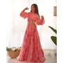 Designer Lehenga Choli Set Tabby Organja Silk Fabric Floral Print for Women – Pink Color