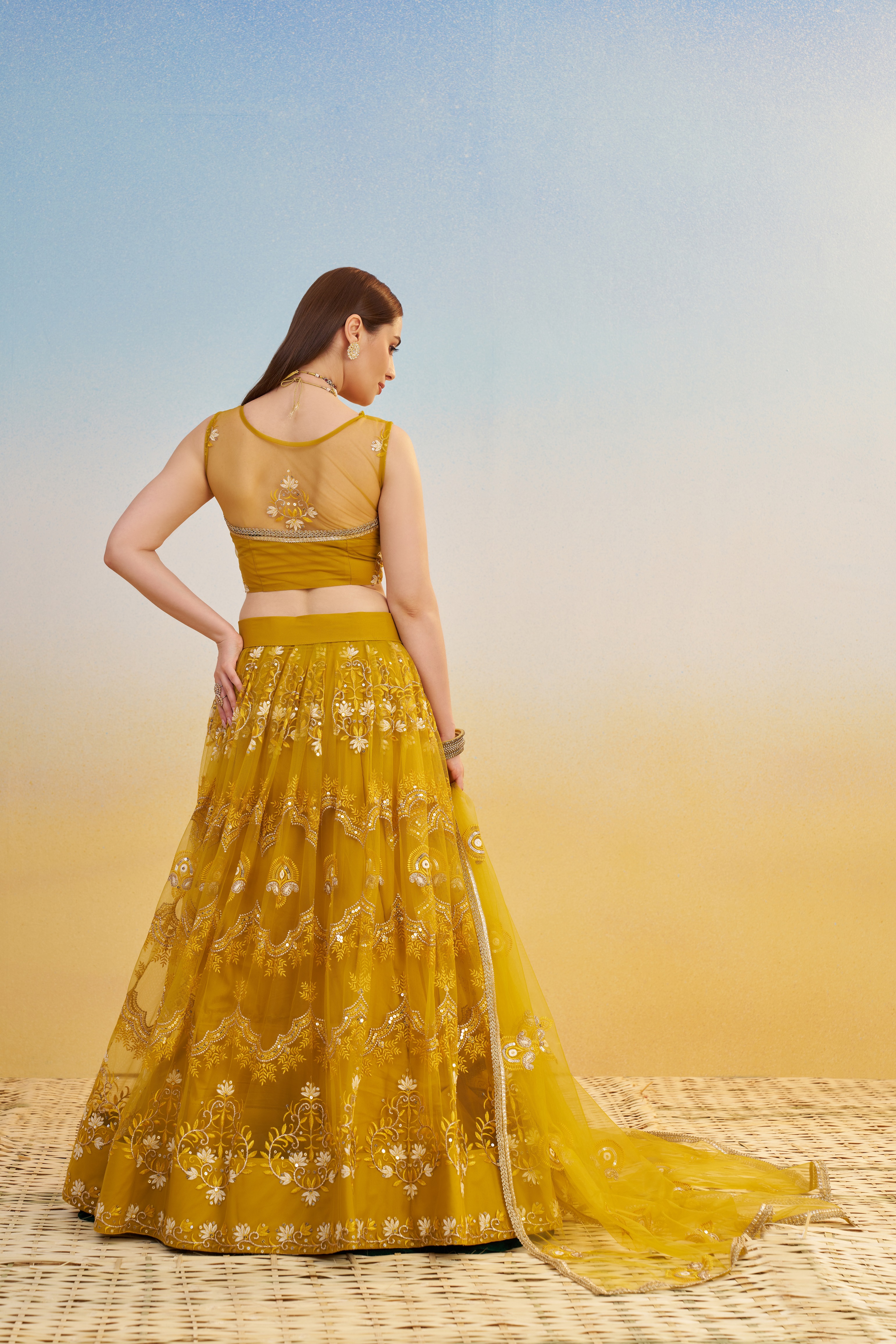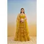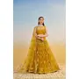 Designer Lehenga Choli Set with Dupatta Butterfly Net Fabric Tone To Tone Thread Work, Zari Work And Sequence Work Embroidery With Readymade Fancy Lace for Women – Mustardyellow Color