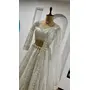 Fabric : Net lehenga with sequins, dori thread work, 3.25 meter flair, can can attach, Net blouse with sequins, dori thread work ( Unstitch ), Pearl border given, Net duppata with sequins, dori thread work with pearl border work.