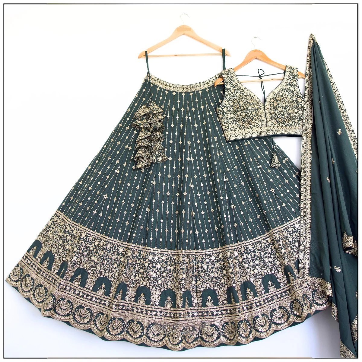 LEHENGA(BOTTOM), FABRIC:- STAR FAUX GEORGETTE, INNER:- CREPE, WORK:- 3MM5MM SEQUINS WITH JARI EMBROIDERY WORK, STITCH:- SEMI STITCHED(WITH KENKEN AND KENVAS), SIZE:- 42HEIGHT AND 42 TO 44 WAIST, FLAIR:- 3.50 METER FLAIR, CHOLI(TOP), FABRIC:- STAR FAUX GEORGETTE, INNER:- CREPE, BLOUSE SIZE:- 1 METER EMBROIDERED FABRIC, WORK:- 3MM5MM SEQUINS WITH JARI EMBROIDERY WORK, STITCH:- UN STITCHED EMBROIDERED FABRIC WITH INNER FABRICS, DUPATTA, FABRIC:- STAR FAUX GEORGETTE WITH LACE BORDER WORK, WORK:- 3MM5MM JARI EMBROIDERY WORK, SIZE:- 2.25 METER DUPATTA, STITCH:- FULL STITCHED, ADDITIONAL, WASH CARE: - DRY CLEAN ONLY, COLOR: - PRODUCT COLOR MAY SLIGHTLY VARY DUE TO PHOTOGRAPHIC LIGHTNING SOURCES OR YOUR DEVICE DISPLAY SETTINGS, THESE ARE MADE TO ORDER DESIGNER STYLES, HENCE EXPECT A SLIGHT VARIATION FROM THE IMAGE DISPLAYED.
