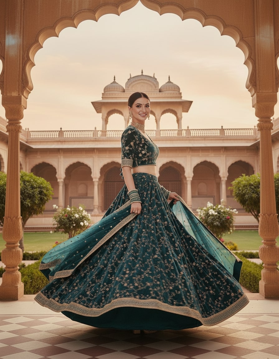 LEHENGA(BOTTOM)FABRIC:- 9000 VELVET FABRICINNER:- MICRO FABRICWORK:- 3MM SEQUINS WITH JARI AND CODDING DORI EMBROIDERY WORKSTITCH:- SEMI STITCHED WITH CANCAN AND CANVASSIZE:- 42 HEIGHT AND 42 WAIST FLAIR:- 3.00 TO 3.20 METERCHOLI(TOP)FABRIC:- 9000 VELVET FABRICSIZE:- 0.80 METER FABRICWORK:- 3MM SEQUINS WITH JARI AND CODDING DORI EMBROIDERY WORKSTITCH:- UN STITCHED FABRICEBROIDERY WORK SIZE:- FRONT HEIGHT-14 WIDTH-22, , BACK HEIGHT-14 WIDTH-22, , SLEVES HEIGHT-8 WIDTH-13.50DUPATTAFABRIC:- NETWORK:- 3MM SEQUINS WITH JARI AND CODDING DORI EMBROIDERY LACE BORDERWORKSIZE:- 2.25 METER DUPATTASTITCH:- FULL STITCHEDADDITIONALWASH CARE: - DRY CLEAN ONLYCOLOR: - PRODUCT COLOR MAY SLIGHTLY VARY DUE TO PHOTOGRAPHIC LIGHTNING SOURCES OR YOUR DEVICE DISPLAY SETTINGSTHESE ARE MADE TO ORDER DESIGNER STYLES, HENCE EXPECT A SLIGHT VARIATION FROM THE IMAGE DISPLAYEDIN THE BOX 1 PIECE LEHENGA 1 PIECE DUPATTA 1 PIECE BLOUSE FABRIC.
