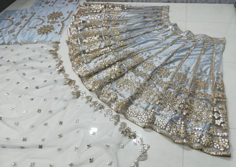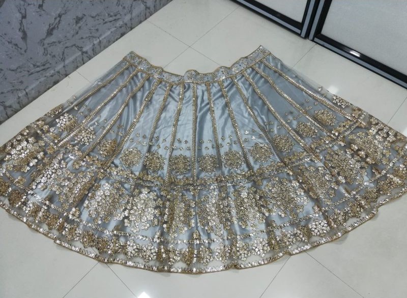 Grey Embroidered Net Lehenga Set
