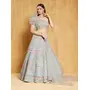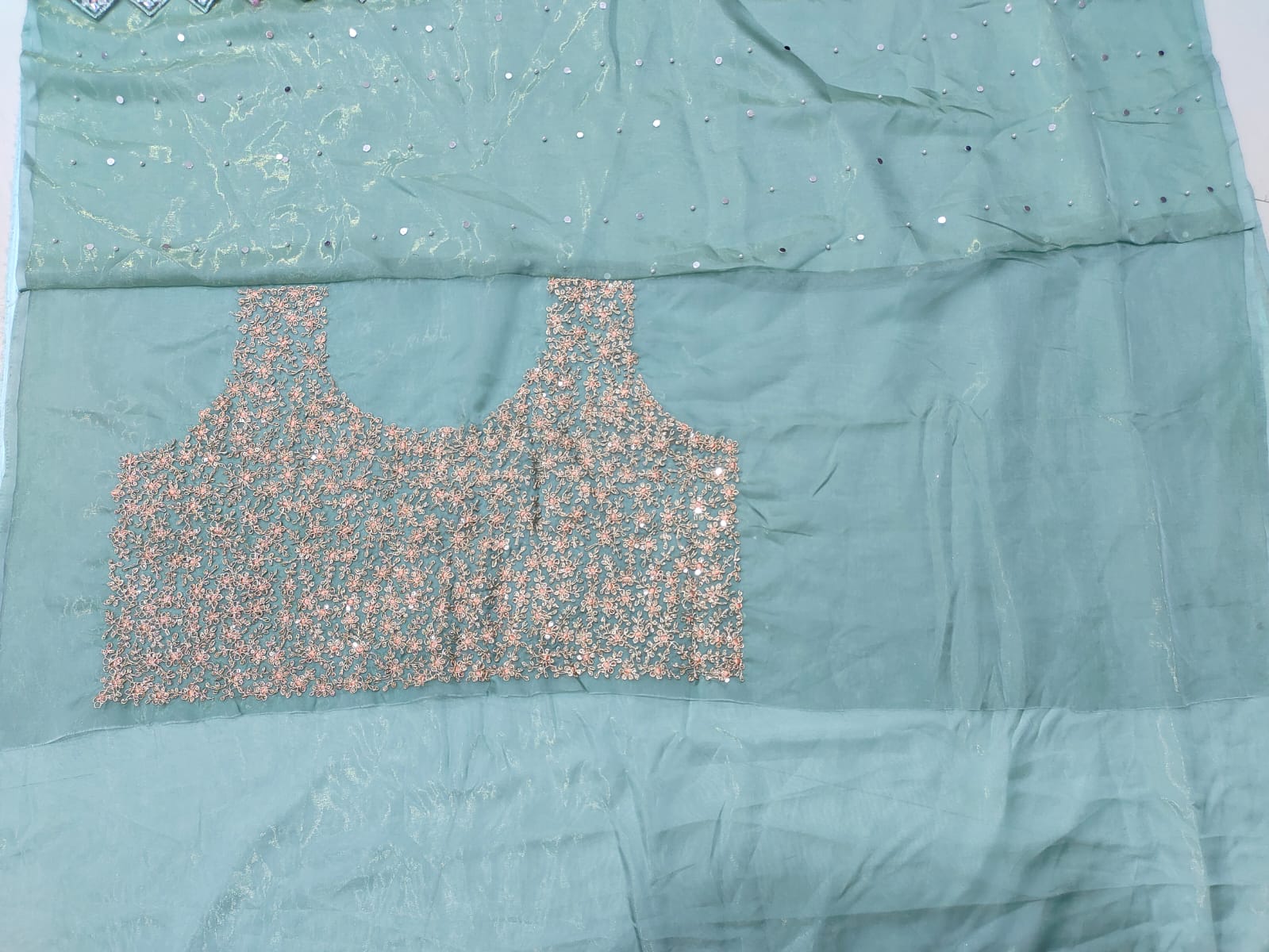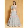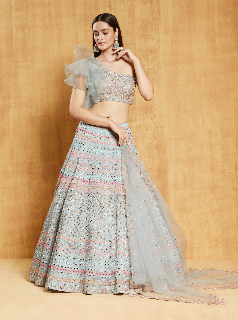 Light Turquoise Thread Zari Embroidered Organza Lehenga Set