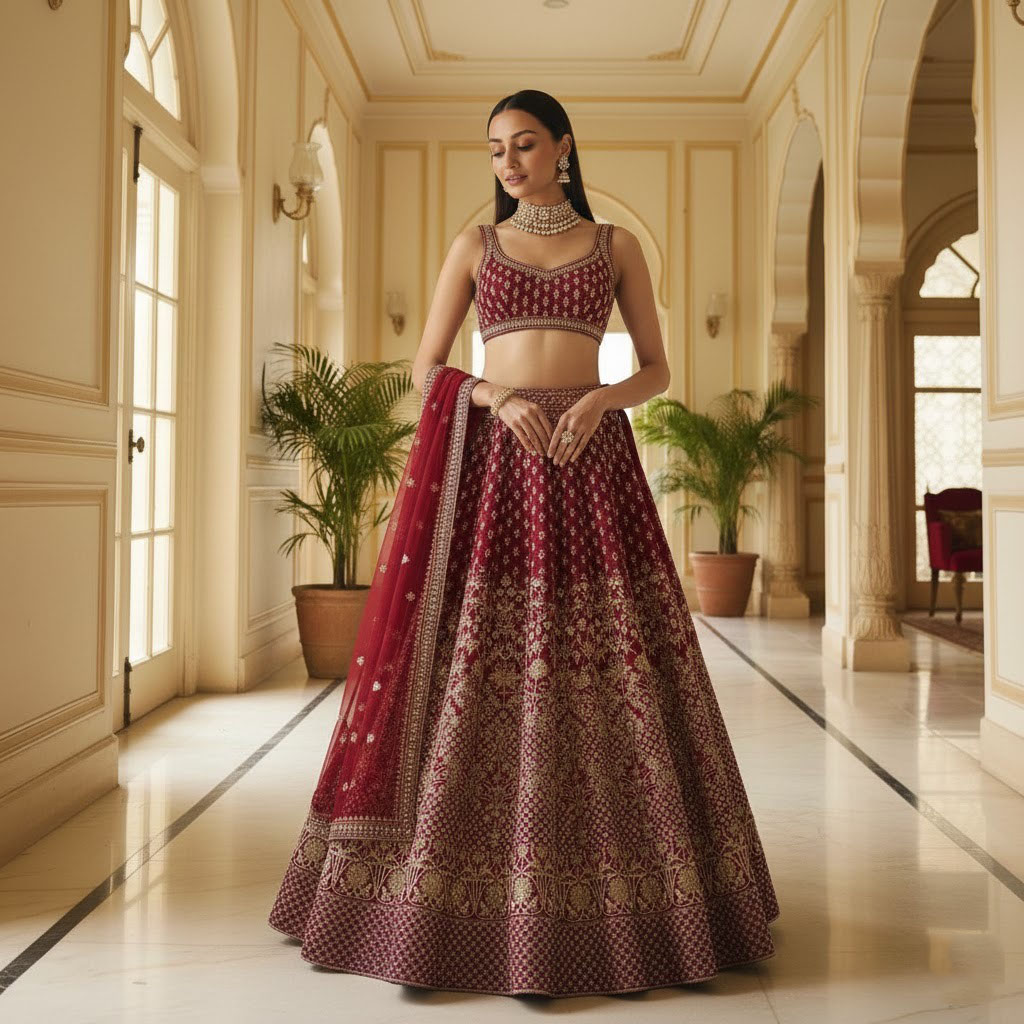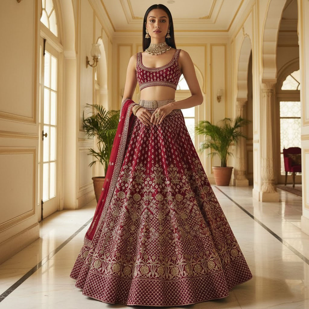 LEHENGA(BOTTOM)FABRIC:- TWO TONE TAFETA SATIN SILKINNER:- MICRO FABRIC WITH CANCAN AND CANVASWORK:- 3MM SEQUINS, CODING DORI AND JARI EMBROIDERY WORKSTITCH:- SEMI STITCHEDSIZE:- 42HEIGHT AND 42WAISTFLAIR:- 3.00 to 3.10 METER FLAIRCHOLI(TOP) :-FABRIC:- TWO TONE TAFETA SATIN SILKSIZE:- 0.80 METER WORK:- 3MM SEQUINS, CODING DORI AND JARI EMBROIDERY WORKSTITCH:- UN STITCHED DUPATTA :-FABRIC:- SOFT NETWORK:- 3MM SEQUINS AND JARI EMBROIDERY LACE BORDER WORKSIZE:- 2.25 METER DUPATTASTITCH:- FULL STITCHEDADDITIONALWASH CARE: - DRY CLEAN ONLYCOLOR: - PRODUCT COLOR MAY SLIGHTLY VARY DUE TO PHOTOGRAPHIC LIGHTNING SOURCES OR YOUR DEVICE DISPLAY SETTINGSTHESE ARE MADE TO ORDER DESIGNER STYLES, HENCE EXPECT A SLIGHT VARIATION FROM THE IMAGE DISPLAYEDIN THE BOX 1 PIECE LEHENGA 1 PIECE DUPATTA 1 PIECE BLOUSE FABRIC.