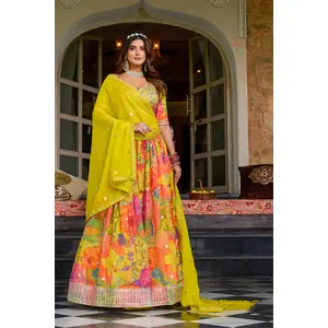 Yellow Color Smart Printed Leenga...