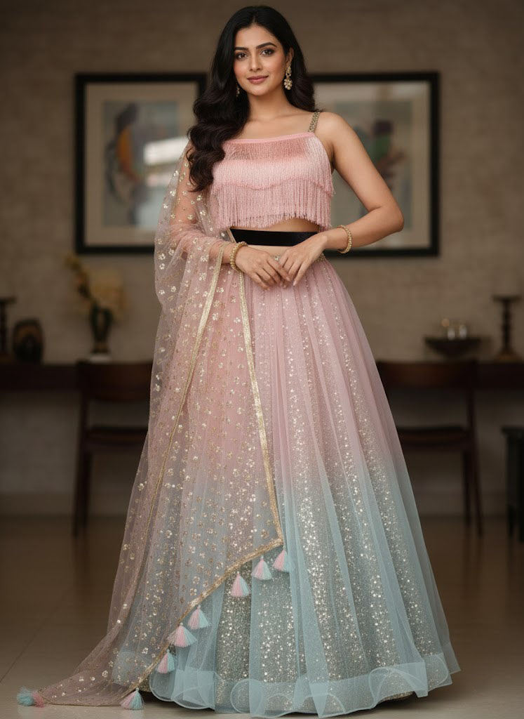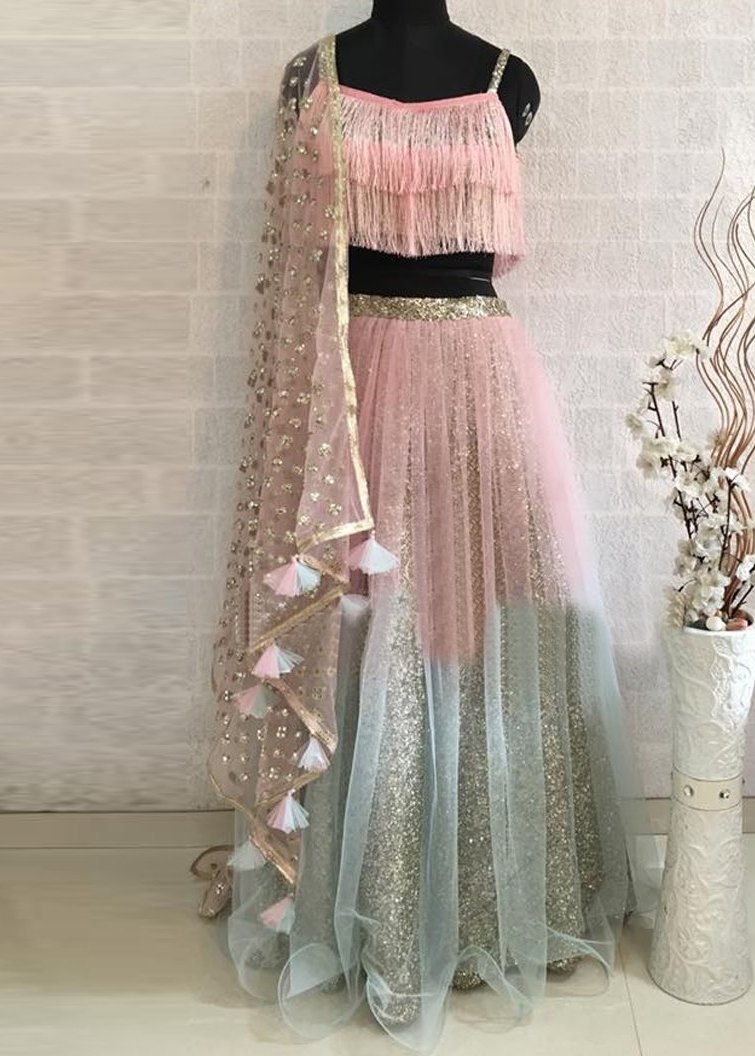LEHENGA(BOTTOM)FABRIC:- NETFABRICINNER:- CHINA GLITTERING FABRICSTITCH:- SEMI STITCHEDSIZE:- 42HEIGHT AND 42WAISTFLAIR:- 5 METER FLAIRCOLOR:- MULTI COLOR HALF AND HALF, PINK AND GRAY CHOLI(TOP)FABRIC:- CHINA GLITTERING FABRIC WITH JHALARSIZE:- 0.80 METER FABRICSTITCH:- UN STITCHED FABRICCOLOR:- PINK COLOR FABRICDUPATTAFABRIC:- NET FABRICWORK:- 3MM SEQUINS EMBROIDERY WORK WITH NWT TASSELSSIZE:- 2.25 METER DUPATTASTITCH:- FULL STITCHEDCOLOR:- PINK COLOR ADDITIONALWASH CARE: - DRY CLEAN ONLYCOLOR: - PRODUCT COLOR MAY SLIGHTLY VARY DUE TO PHOTOGRAPHIC LIGHTNING SOURCES OR YOUR DEVICE DISPLAY SETTINGSTHESE ARE MADE TO ORDER DESIGNER STYLES, HENCE EXPECT A SLIGHT VARIATION FROM THE IMAGE DISPLAYEDIN THE BOX 1 PIECE LEHENGA 1 PIECE DUPATTA 1 PIECE BLOUSE FABRIC.