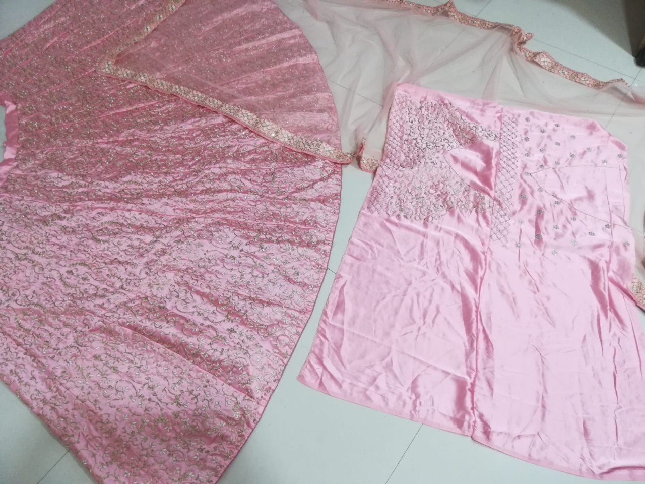 LEHENGA(BOTTOM)FABRIC:- MALAI SATIN SILKINNER:- MICRO FABRICWORK:- 3MM SEQUINS WITH JARI, DORI AND THREAD EMBROIDERY WORKSTITCH:- SEMI STITCHED WITH CANCAN AND CANVASSIZE:- 42 HEIGHT AND 42 WAIST FLAIR:- 3.25 TO 3.50 METER CHOLI(TOP):-FABRIC:- MALAI SATIN SILKSIZE:- 0.80 METERWORK:- 3MM SEQUINS WITH JARI, DORI AND THREAD EMBROIDERY WORK STITCH:- UN STITCHED FABRICDUPATTA:-FABRIC:- NETWORK:- 3MM SEQUINS WITH JARI, DORI AND THREAD EMBROIDERY LACE BORDER WORK SIZE:- 2.25 METER DUPATTASTITCH:- FULL STITCHEDADDITIONALWASH CARE: - DRY CLEAN ONLYCOLOR: - PRODUCT COLOR MAY SLIGHTLY VARY DUE TO PHOTOGRAPHIC LIGHTNING SOURCES OR YOUR DEVICE DISPLAY SETTINGSTHESE ARE MADE TO ORDER DESIGNER STYLES, HENCE EXPECT A SLIGHT VARIATION FROM THE IMAGE DISPLAYEDIN THE BOX 1 PIECE LEHENGA 1 PIECE DUPATTA 1 PIECE BLOUSE FABRIC.