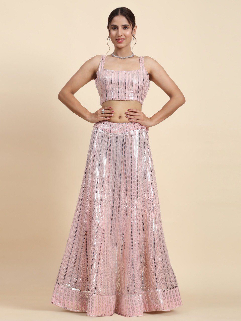 Pink Zari and Sequence Embroidery Work lehenga choli with Net dupatta