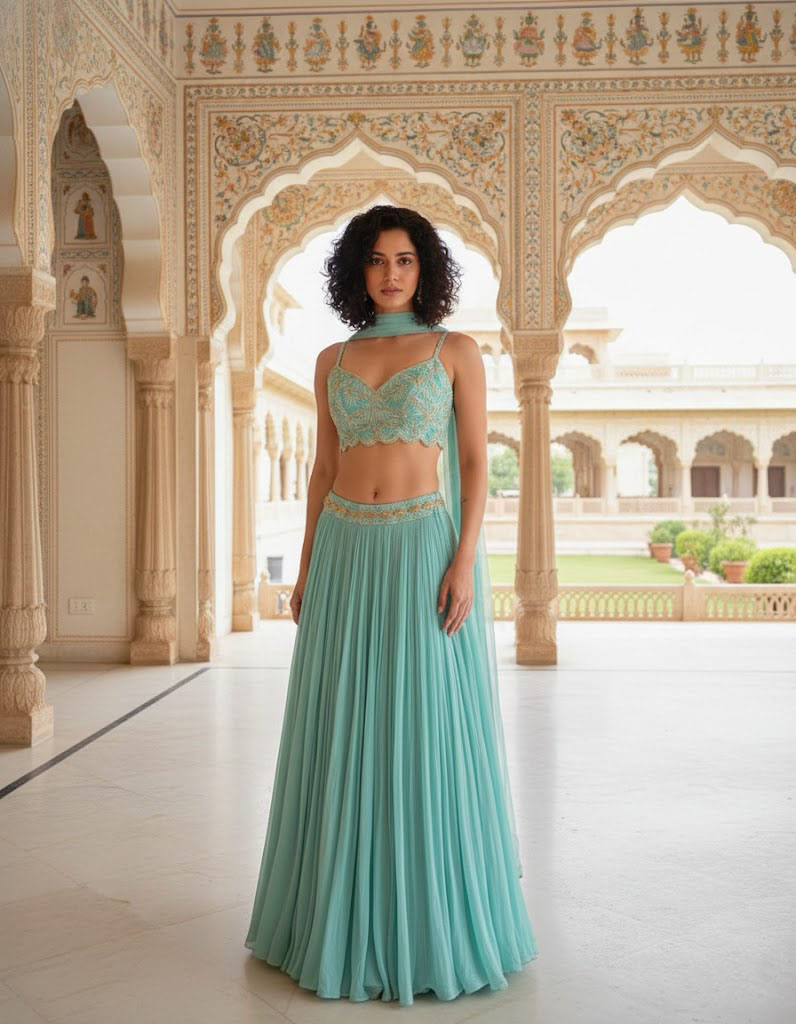 LEHENGA(BOTTOM)FABRIC:- FAUX GEORGETTEINNER:- MICRO FABRICWORK:- CRUSH WORKSTITCH:- SEMI STITCHED WITH CANVASSIZE:- 42HEIGHT AND 42WAISTFLAIR:- 5 METER FLAIR COLOR:- TURQUOISECHOLI(TOP):-FABRIC:- GEORGETTESIZE:- 0.80 METER FABRICWORK:- 3MM SEQUINS JARI AND CODING DORI EMBROIDERY WORK STITCH:- UN STITCHED FABRICCOLOR:- TURQUOISEDUPATTA:-FABRIC:- NETWORK:- HOOK BEADS SIZE:- 2.25 METER DUPATTASTITCH:- FULL STITCHEDCOLOR:- TURQUOISEADDITIONALWASH CARE: - DRY CLEAN ONLYCOLOR: - PRODUCT COLOR MAY SLIGHTLY VARY DUE TO PHOTOGRAPHIC LIGHTNING SOURCES OR YOUR DEVICE DISPLAY SETTINGSTHESE ARE MADE TO ORDER DESIGNER STYLES, HENCE EXPECT A SLIGHT VARIATION FROM THE IMAGE DISPLAYEDIN THE BOX 1 PIECE LEHENGA 1 PIECE DUPATTA 1 PIECE BLOUSE FABRIC.