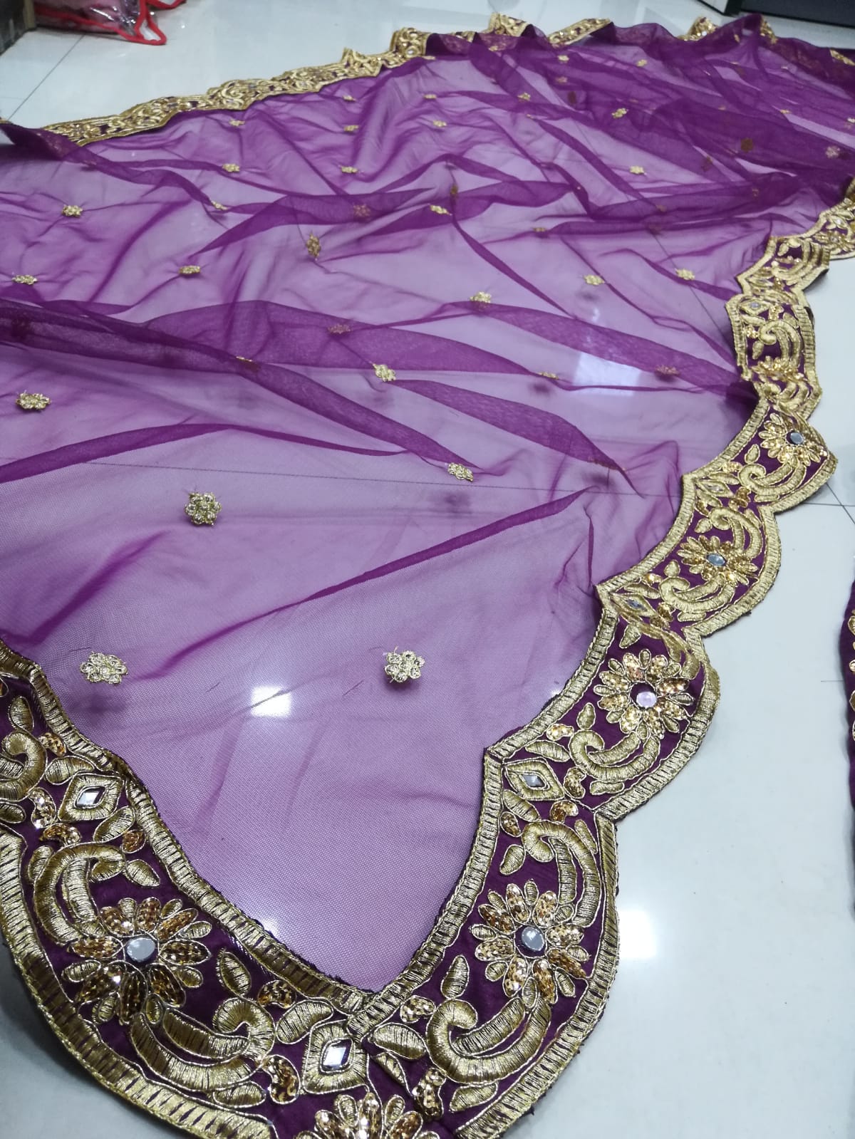 LEHNGA(BOTTOM)FABRIC:- VELVET SILKINNER:- MICROWORK:- JARI, DORI AND 3MM SEQUENCE EMBROIDERY WORKSTITCH:- SEMI STITCHED (WITH KENKEN AND KENVAS)SIZE:- 42HEIGHT AND 42WAISTFLAIR:- 2.80 METER FLAIR CHOLI(TOP):-FABRIC:- VELVET SILKSIZE:- 0.80 METER FABRICWORK:- JARI, DORI AND 3MM SEQUENCE EMBROIDERY WORK STITCH:- UN STITCHED FABRICDUPATTA:-FABRIC:- NETWORK:- JARI, DORI AND 3MM SEQUENCE EMBROIDERY WORKSIZE:- 2.25 METER DUPATTASTITCH:- FULL STITCHEDADDITIONALWASH CARE: - DRY CLEAN ONLYCOLOR: - PRODUCT COLOR MAY SLIGHTLY VARY DUE TO PHOTOGRAPHIC LIGHTNING SOURCES OR YOUR DEVICE DISPLAY SETTINGSTHESE ARE MADE TO ORDER DESIGNER STYLES, HENCE EXPECT A SLIGHT VARIATION FROM THE IMAGE DISPLAYEDIN THE BOX 1 PIECE LEHENGA 1 PIECE DUPATTA 1 PIECE BLOUSE FABRIC.