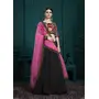 Womens Black Faux Georgette Thread Embroidery Lehenga Set