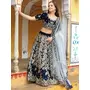 Elevate your ethnic look with this navy blue velvet lehenga featuring zari work work. Designed for festive occasions and celebrations, it offers a graceful flow and timeless appeal.Crafted from lightweight velvet fabric with a semi-stitched finish, this lehenga ensures comfort and easy customization. Dry clean recommended.