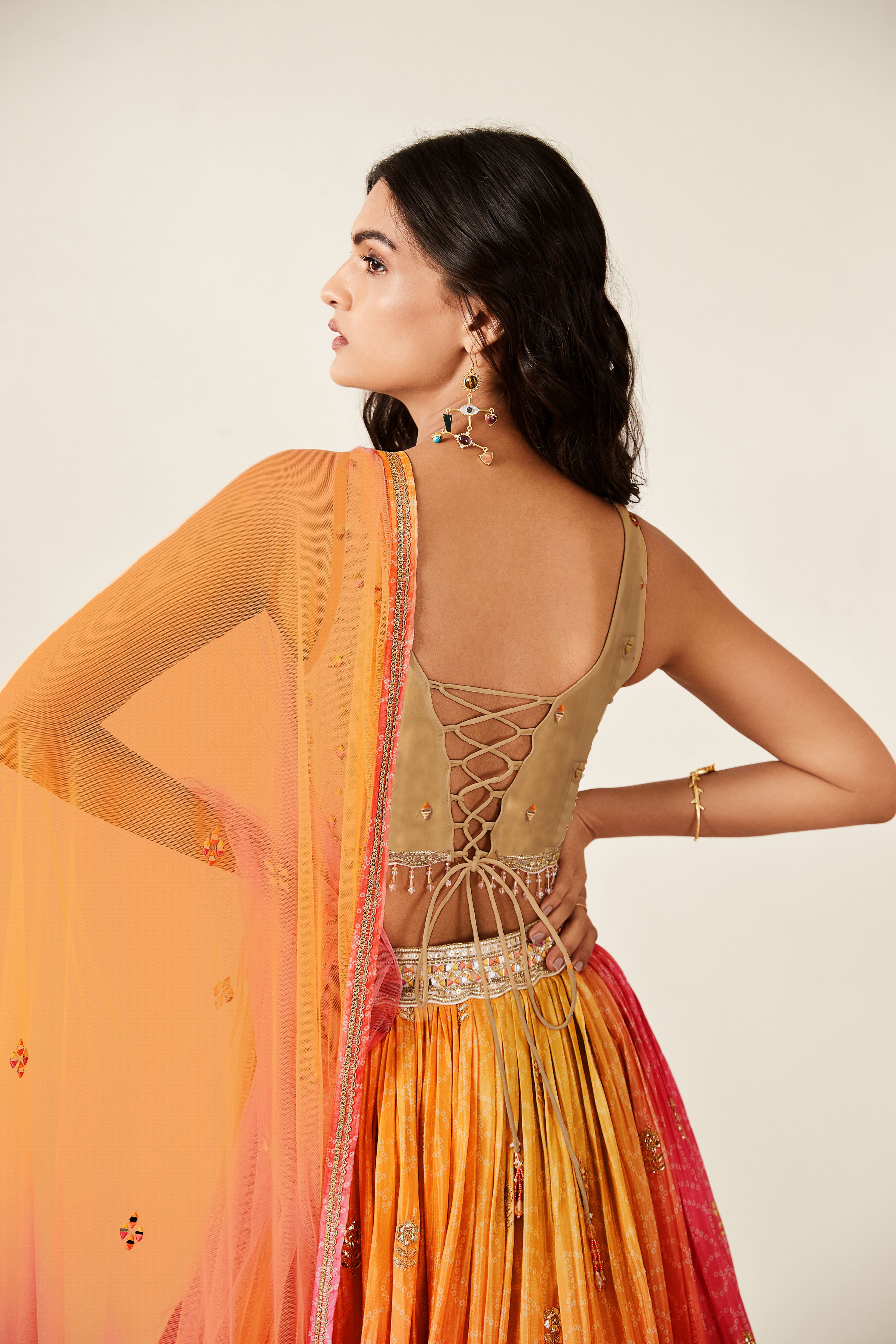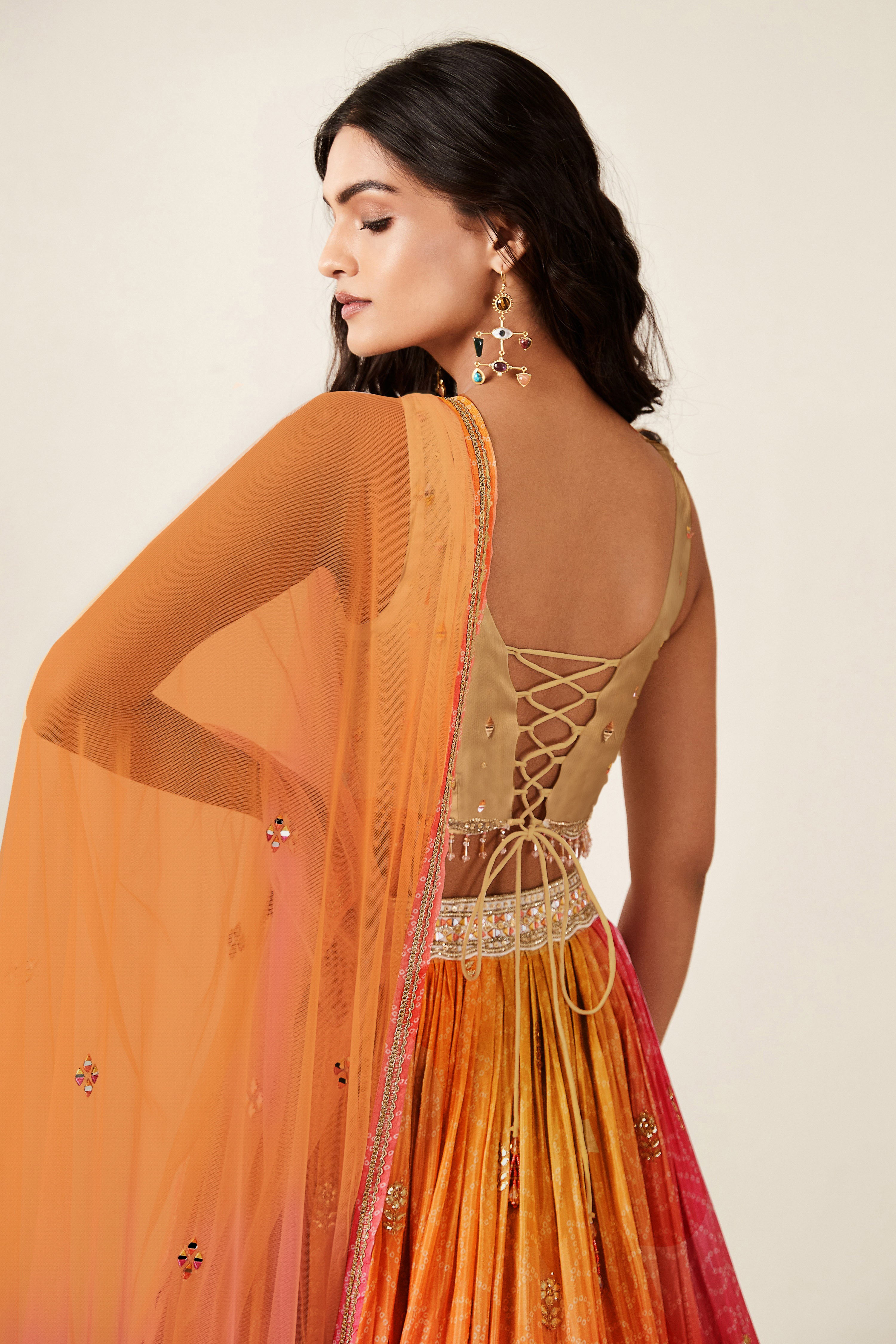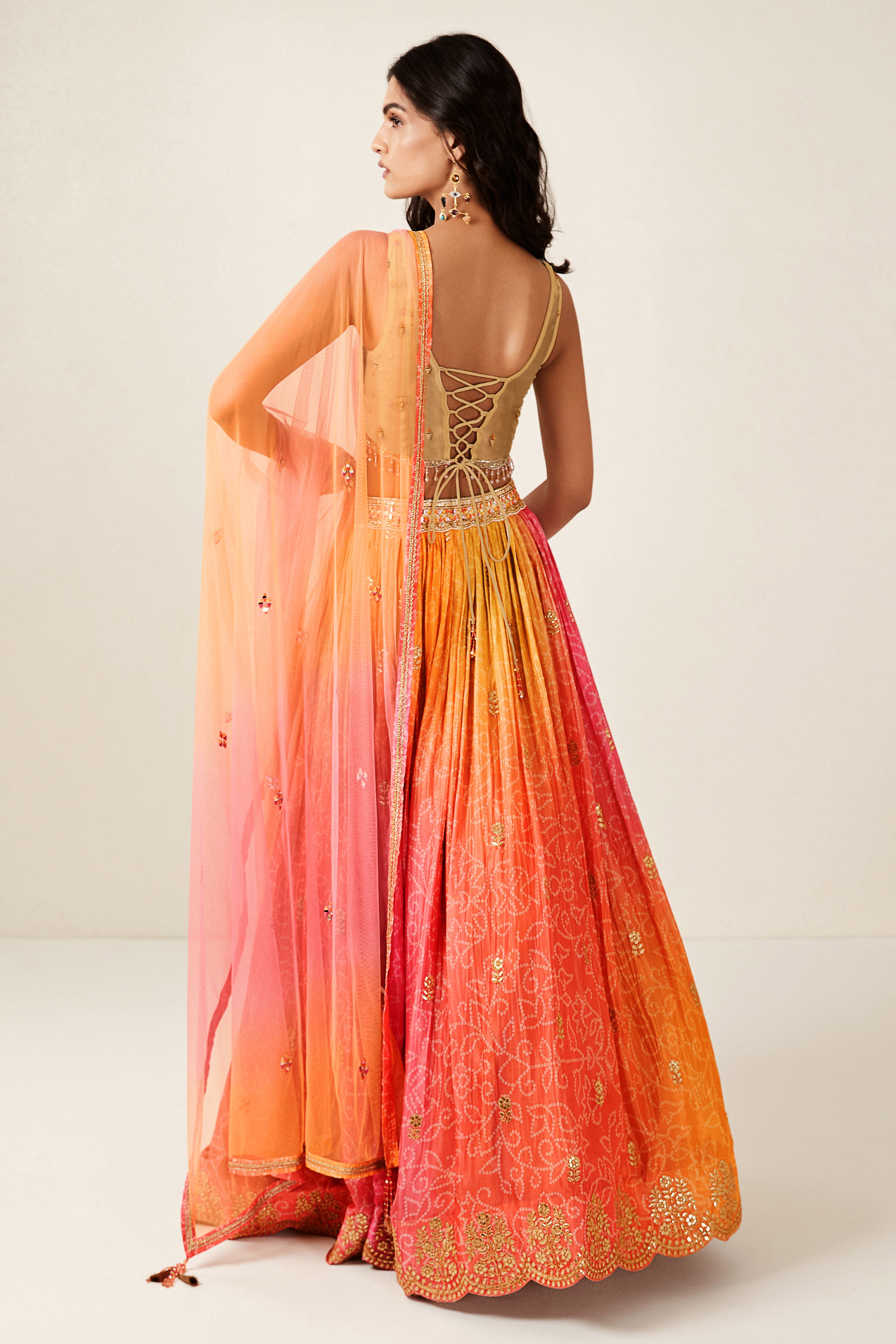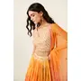 Elevate your ethnic look with this orange organza lehenga featuring digital print work. Designed for festive occasions and celebrations, it offers a graceful flow and timeless appeal.Crafted from lightweight organza fabric with a semi-stitched finish, this lehenga ensures comfort and easy customization. Dry clean recommended.