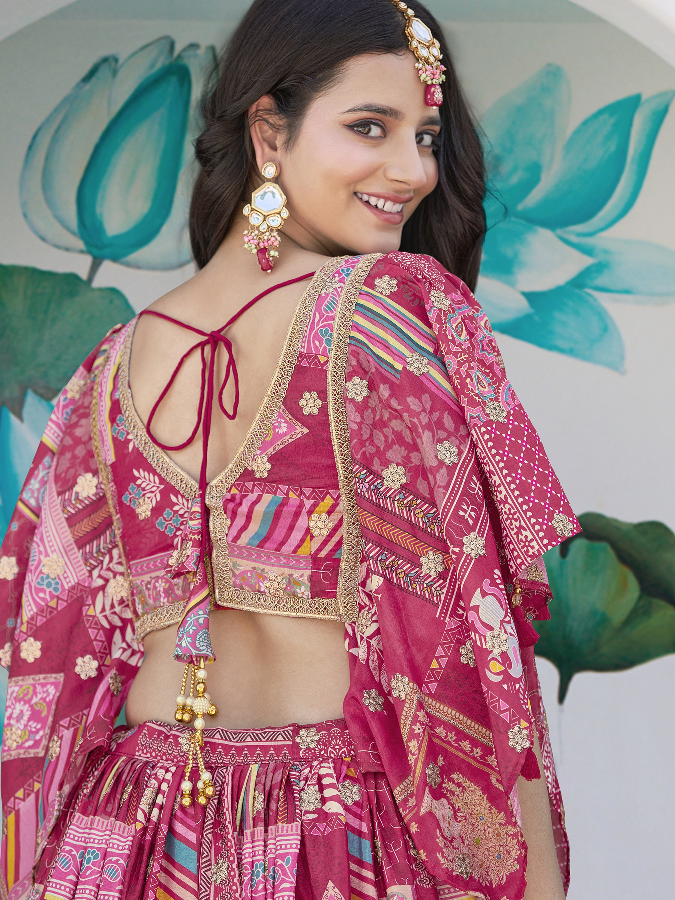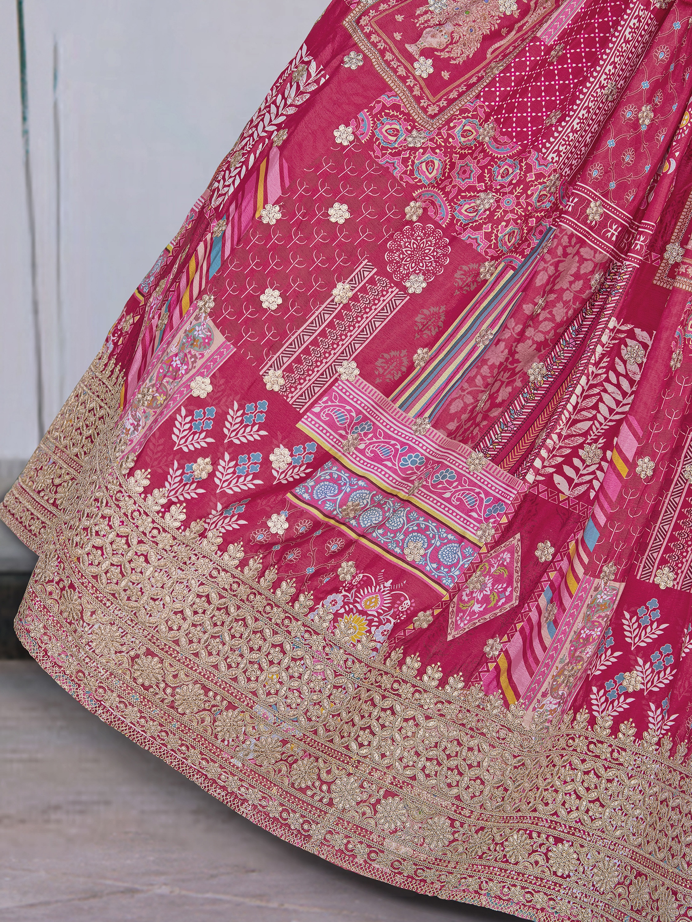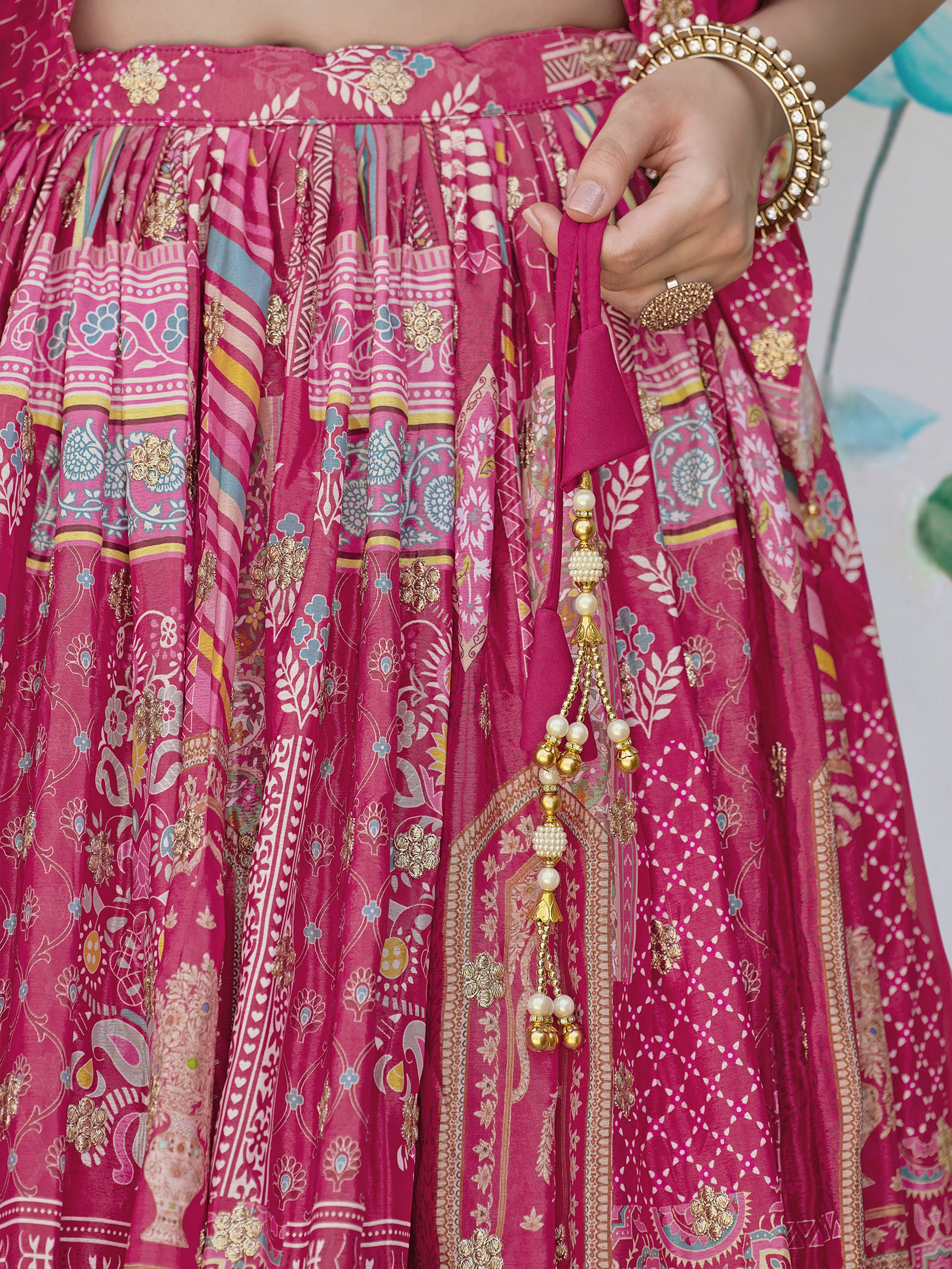 Elevate your ethnic look with this pink chinnon lehenga featuring dori embroidery work. Designed for festive occasions and celebrations, it offers a graceful flow and timeless appeal.Crafted from lightweight chinnon fabric with a semi-stitched finish, this lehenga ensures comfort and easy customization. Dry clean recommended.