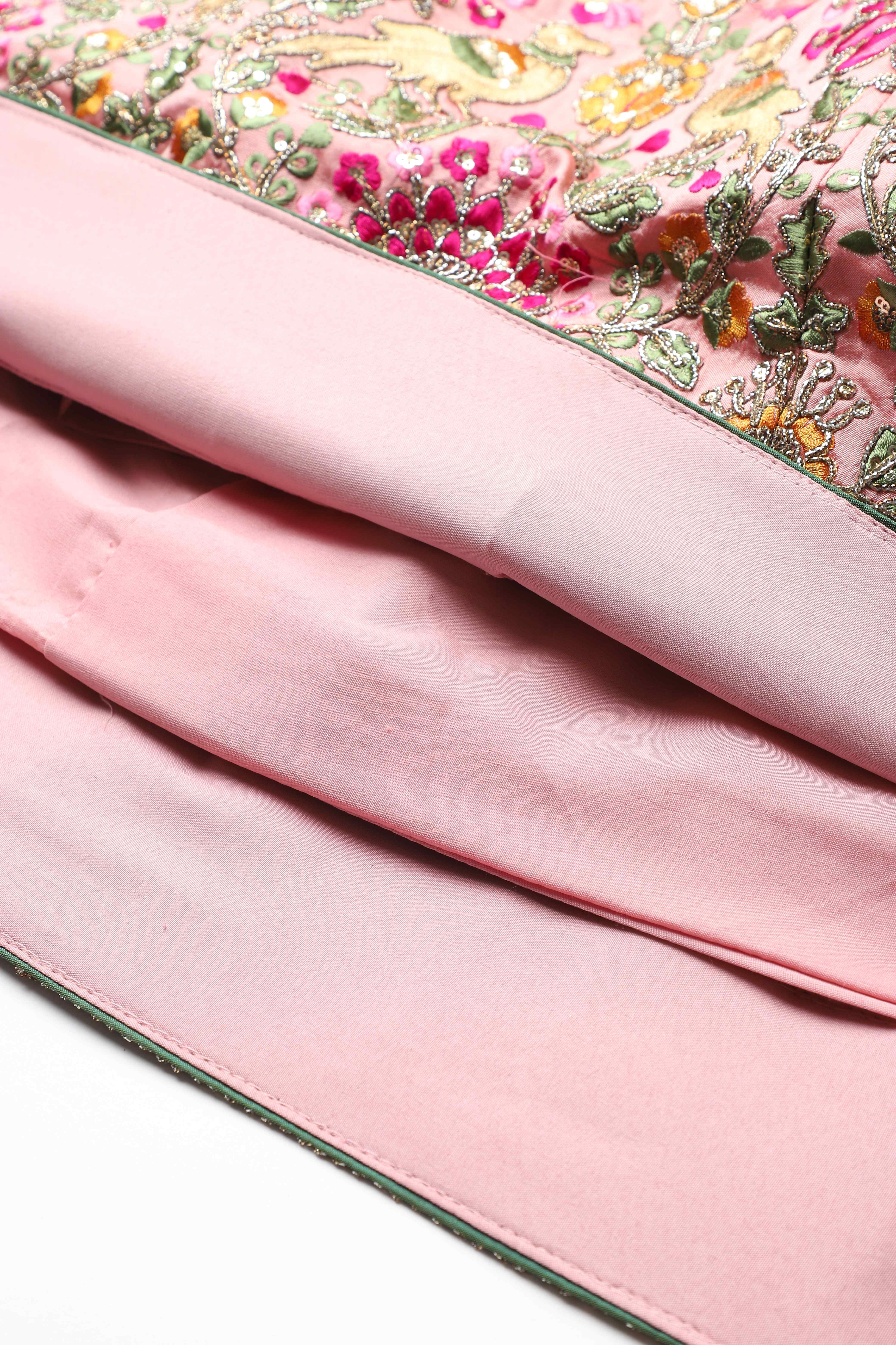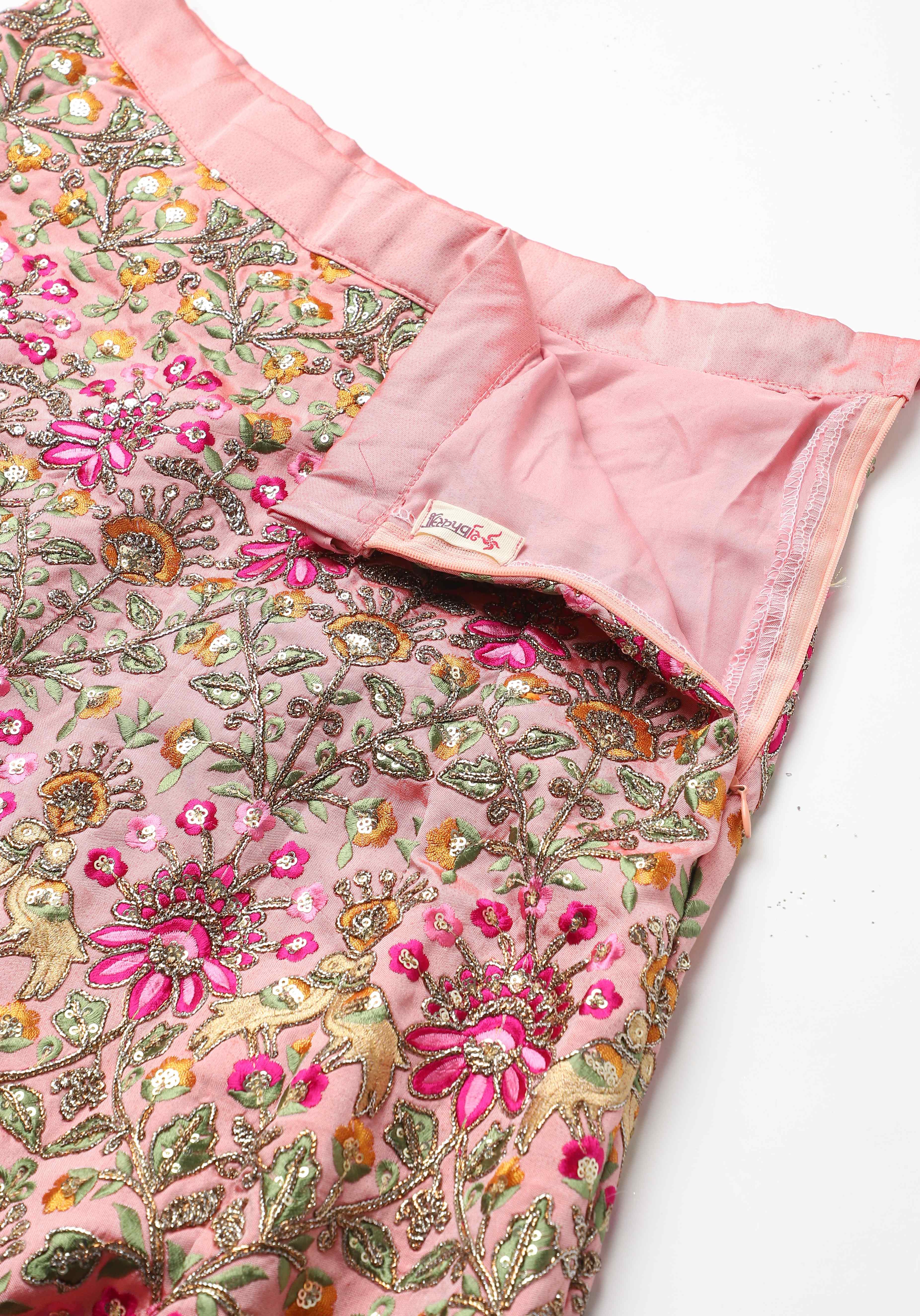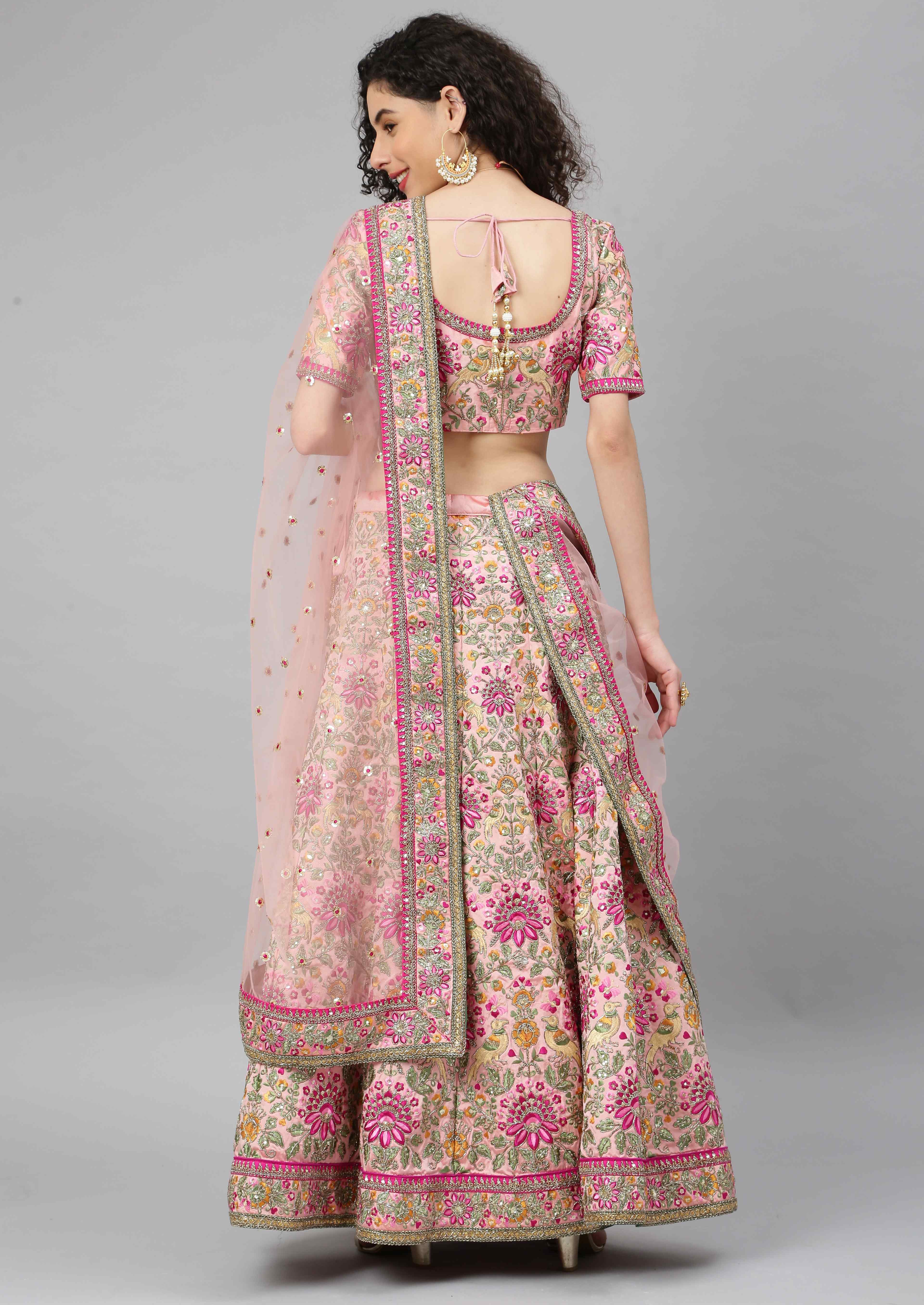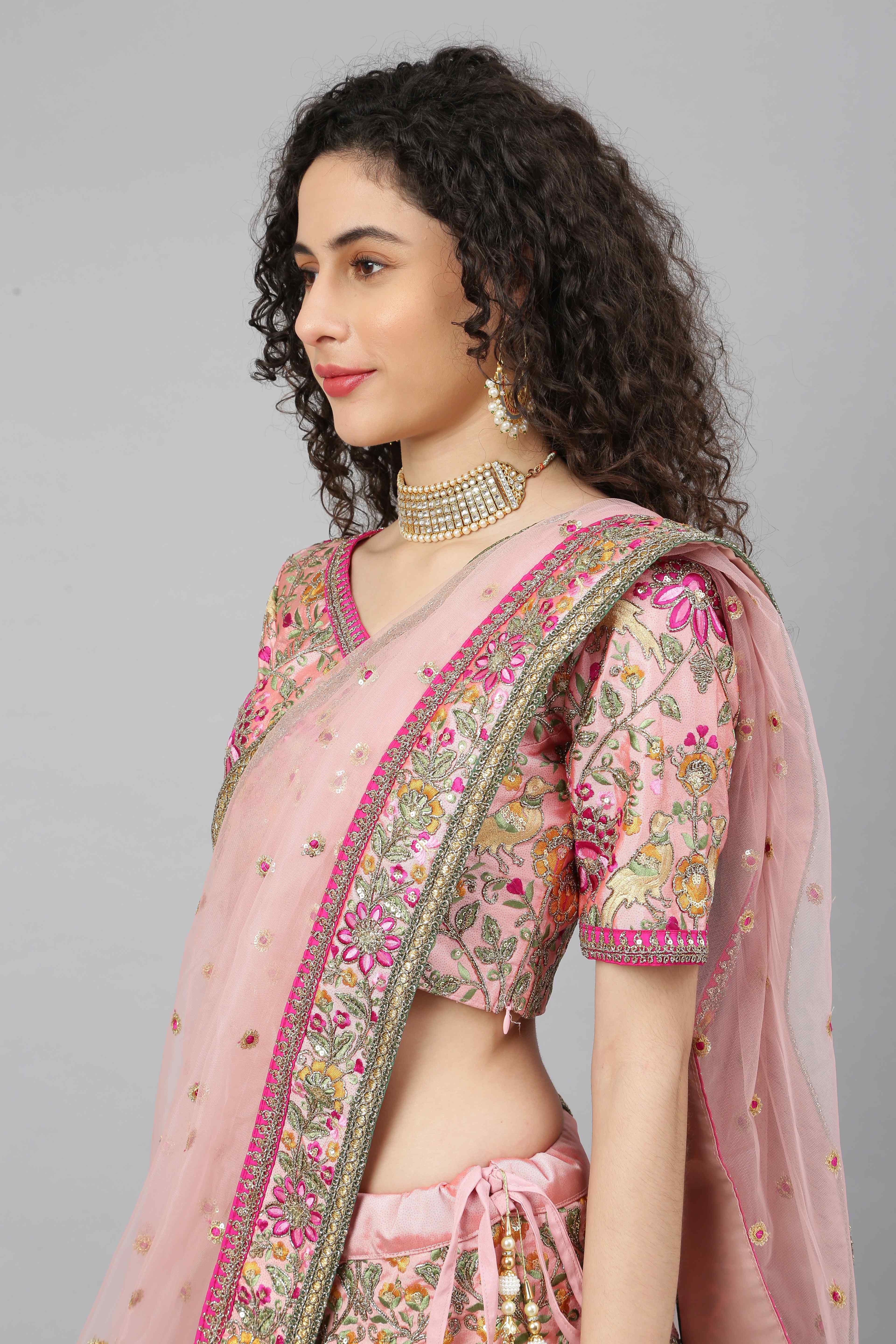 Womens Pink Silk Thread Embroidery Lehenga Set