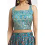 Womens Sky Blue Chinnon Embroidered,Floral,Sequence Lehenga Set