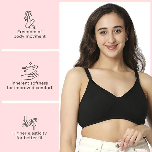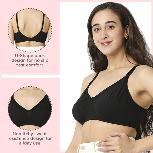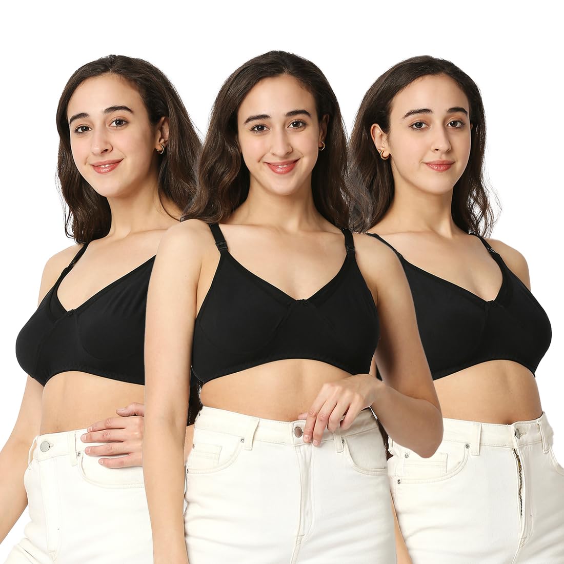Mee Mee Women's Cotton Non-Padded | Double Layered | Wire Free Maternity Bra | Black | Pk of 3 |