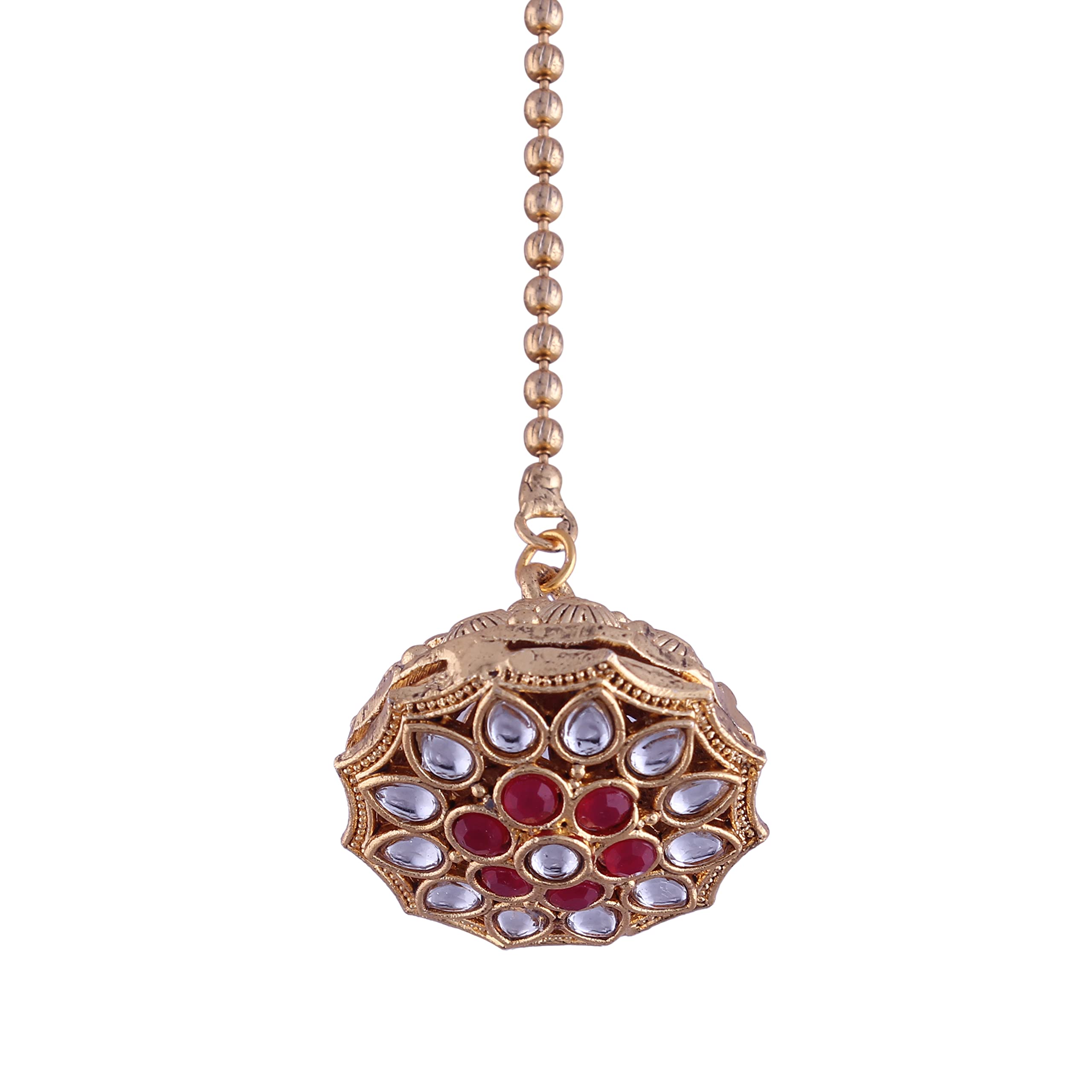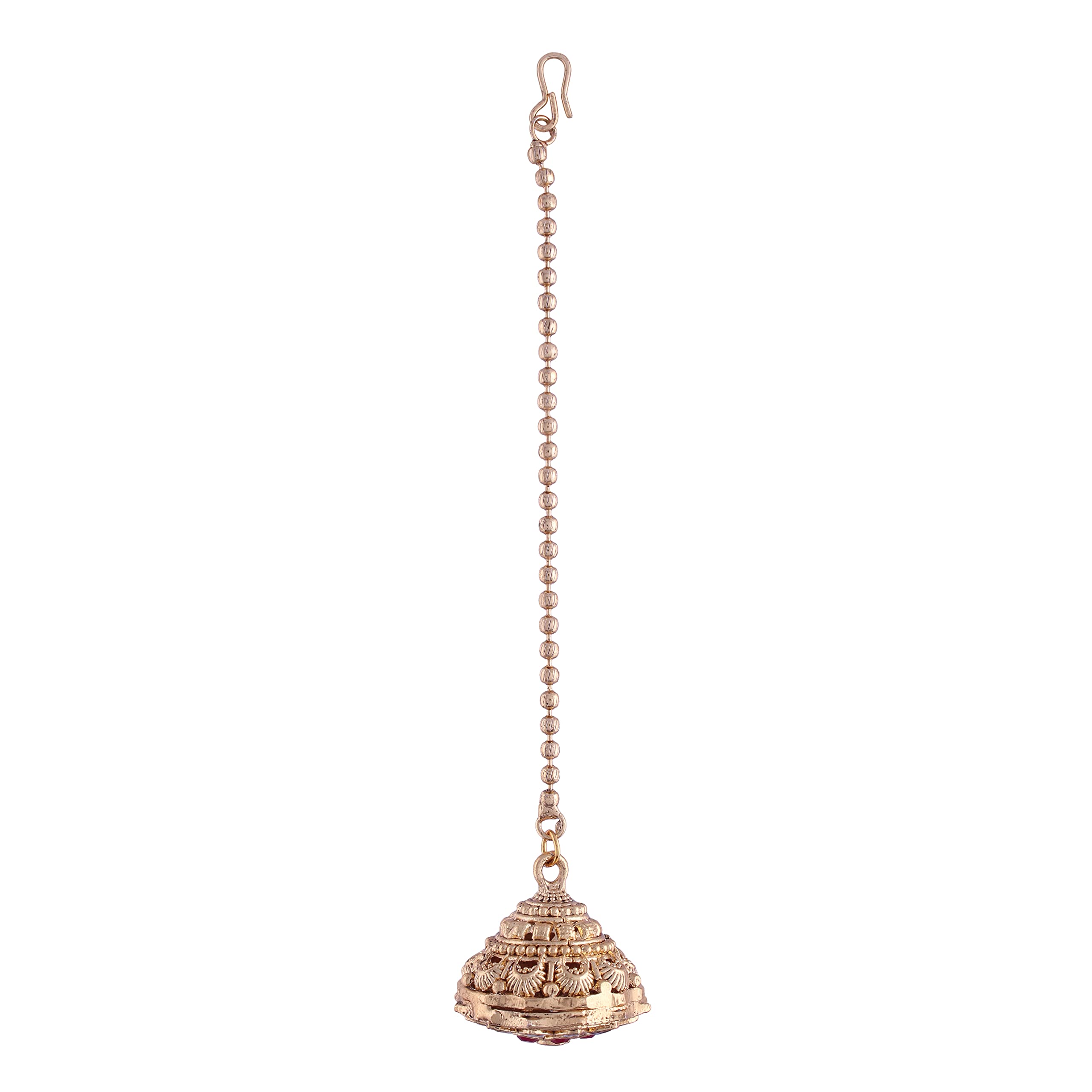 I Jewels 18k Gold Plated Rajasthani/Rajputi Kundan Pearl Studded Borla Matha Patti Maang Tikka for Women (T2074-76)