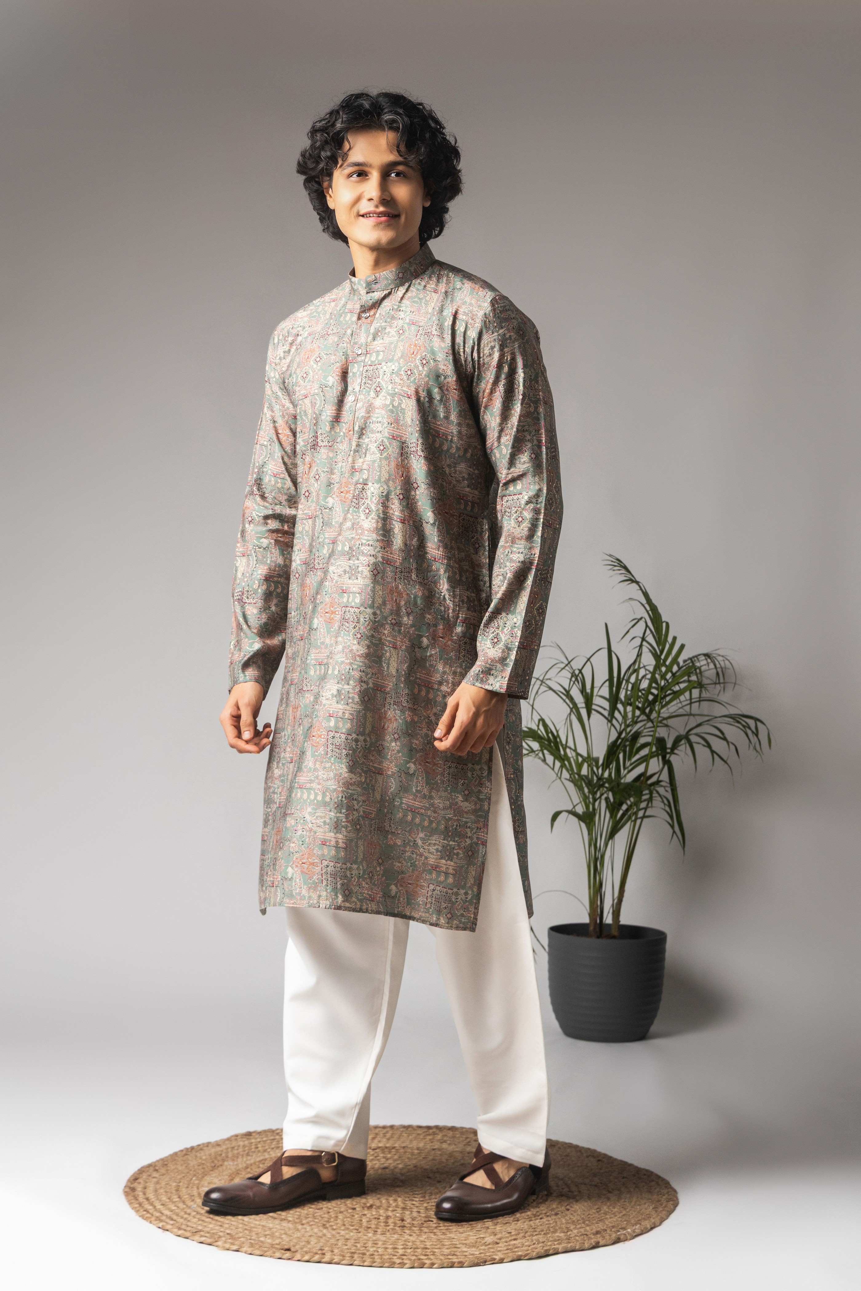 Ash Green Color Modal Silk Fabric Designer Ceremonial Kurta Payjama For Men's