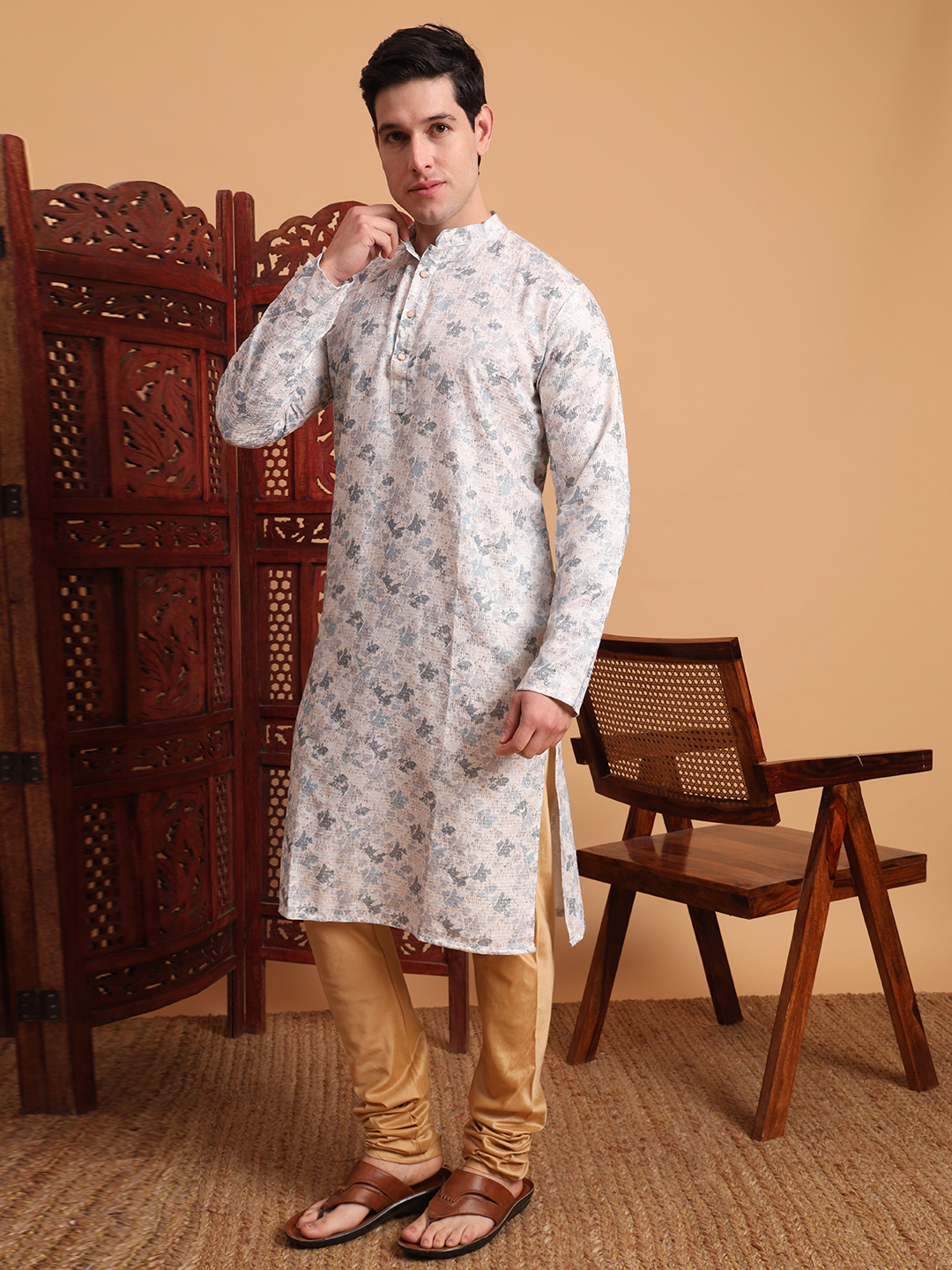Beautiful Grey Color Smart Printed Men's Festive Wear Kurta