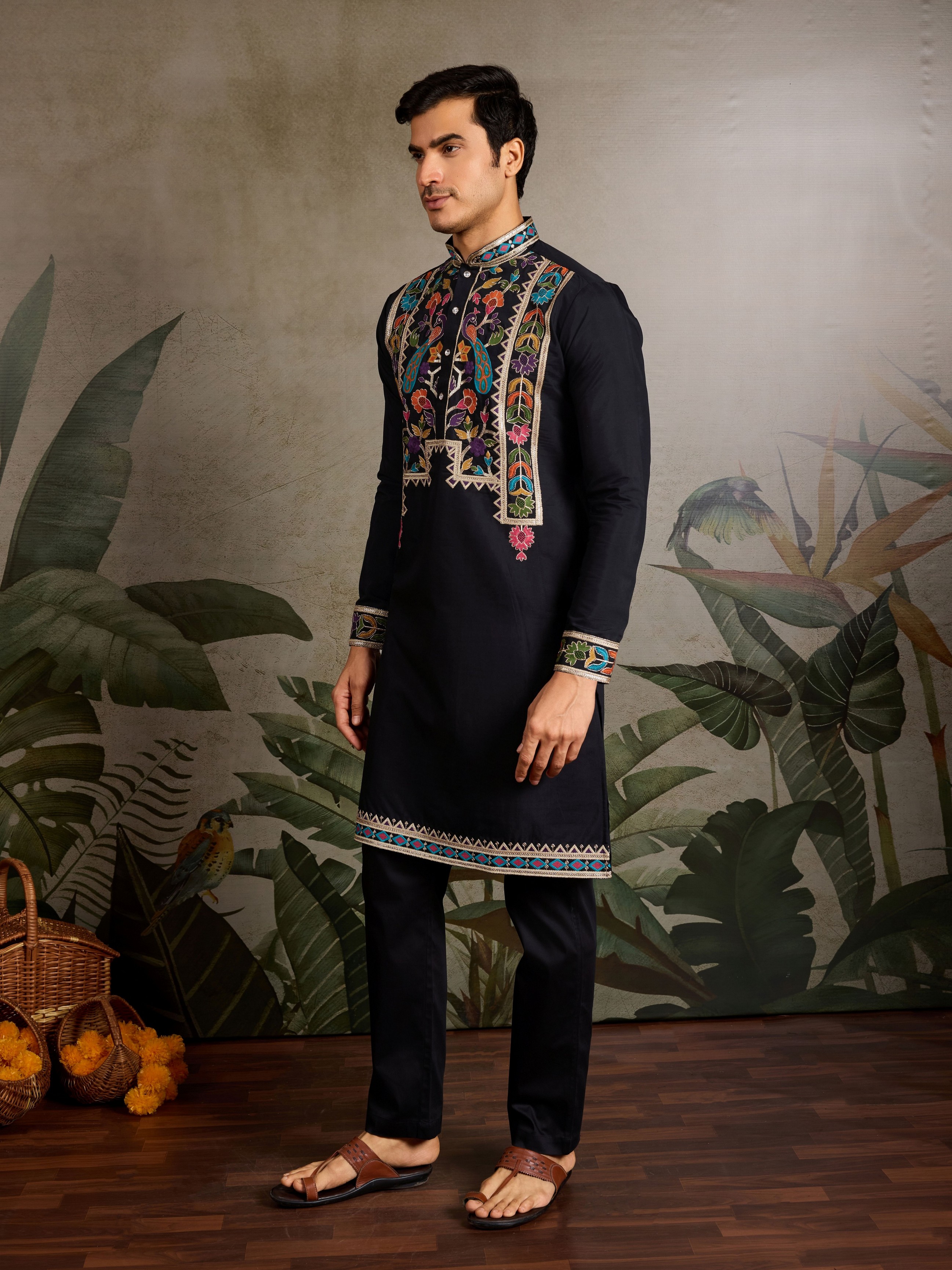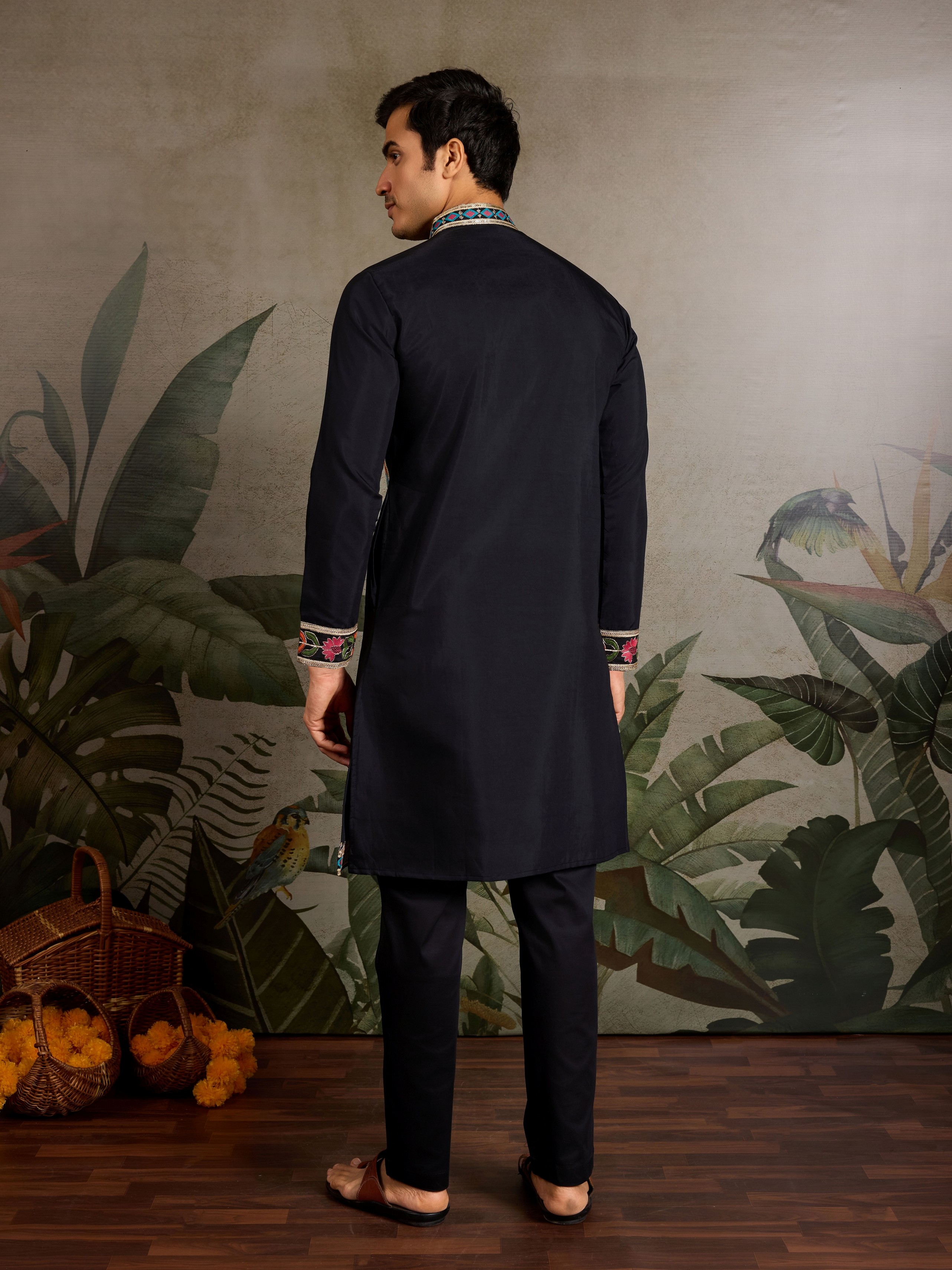 Black Color Beautiful Visccose Silk Festive Special Kurta For Men's