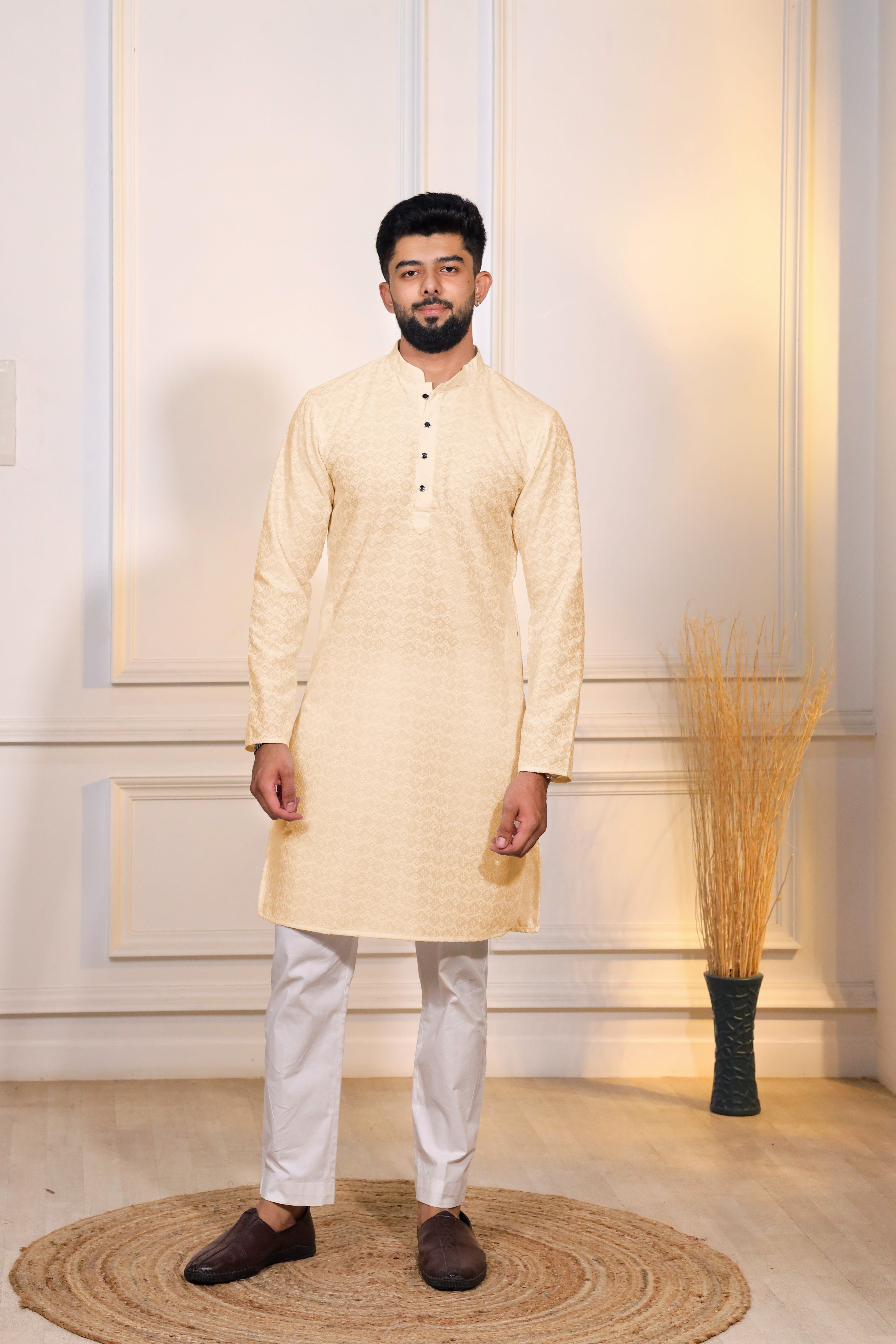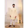 Cream Color Designer Embroidery Work Ceremonial Ethnic Kurta Payjama For Men's