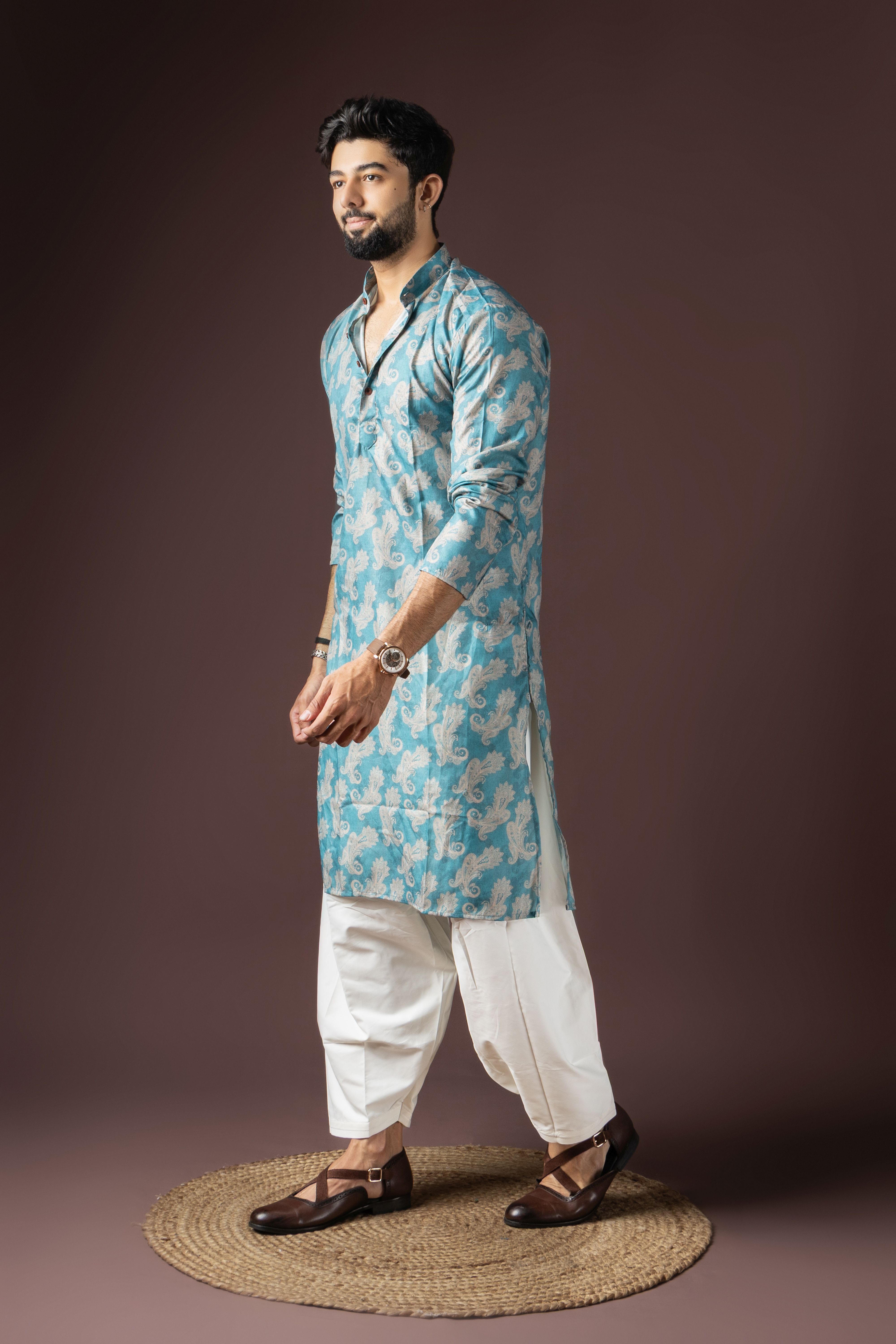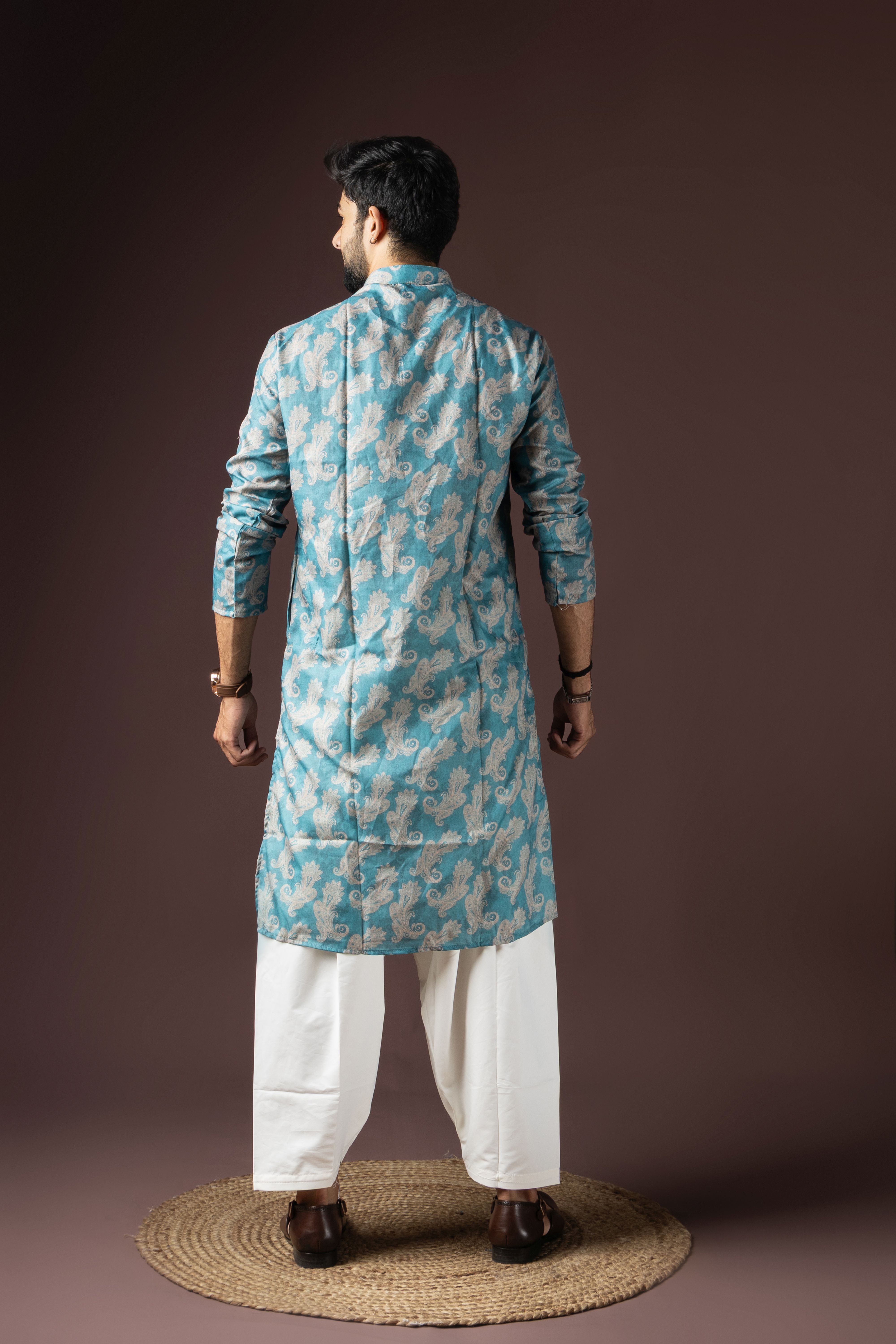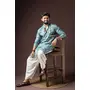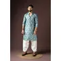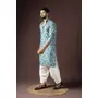 Cyan Blue Color Beautiful Printed Blended Cotton Fabric Ceremonial Men's Kurta Payjama