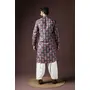 Dark Grey Color Beautiful Printed Blended Cotton Fabric Ceremonial Men's Kurta Payjama