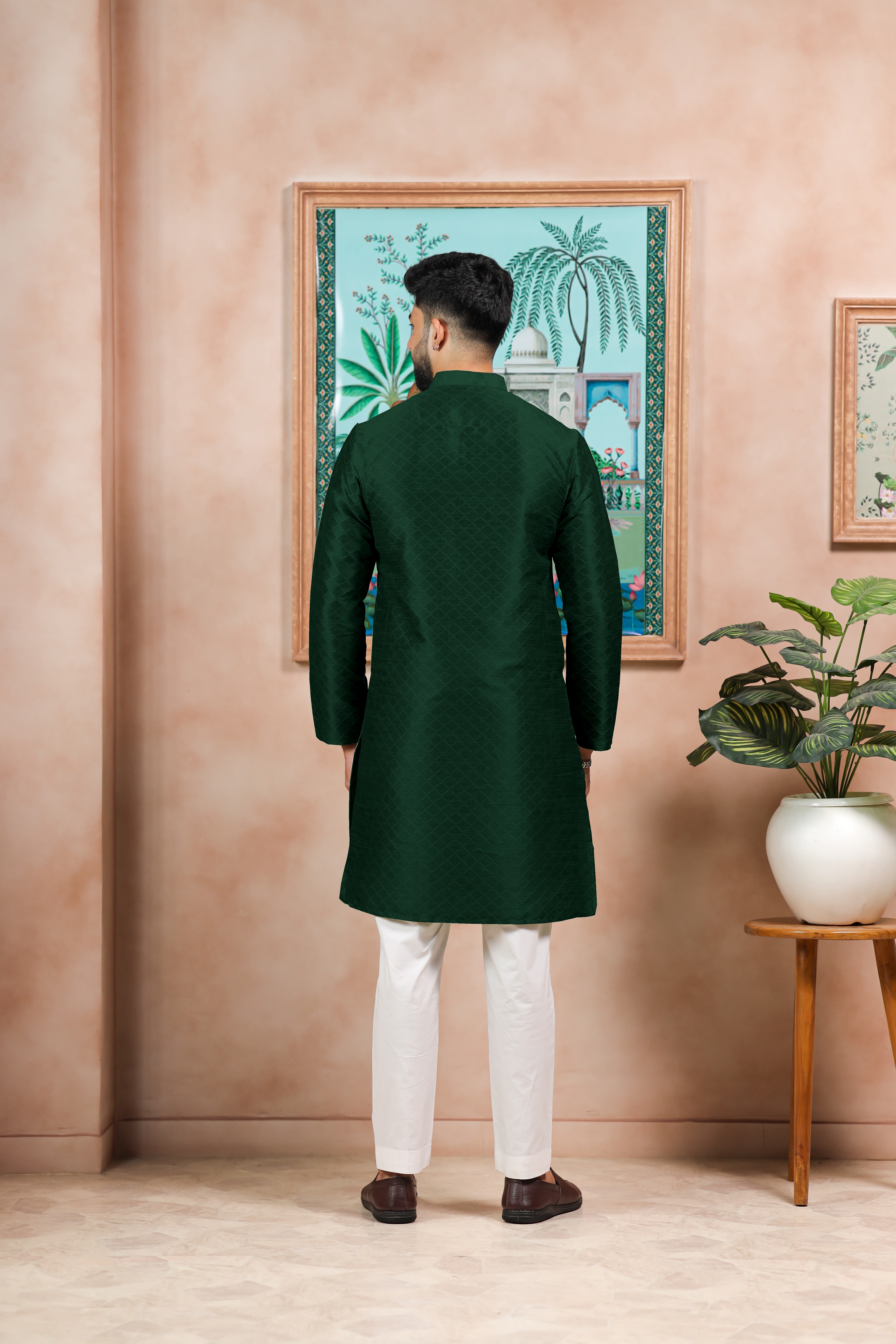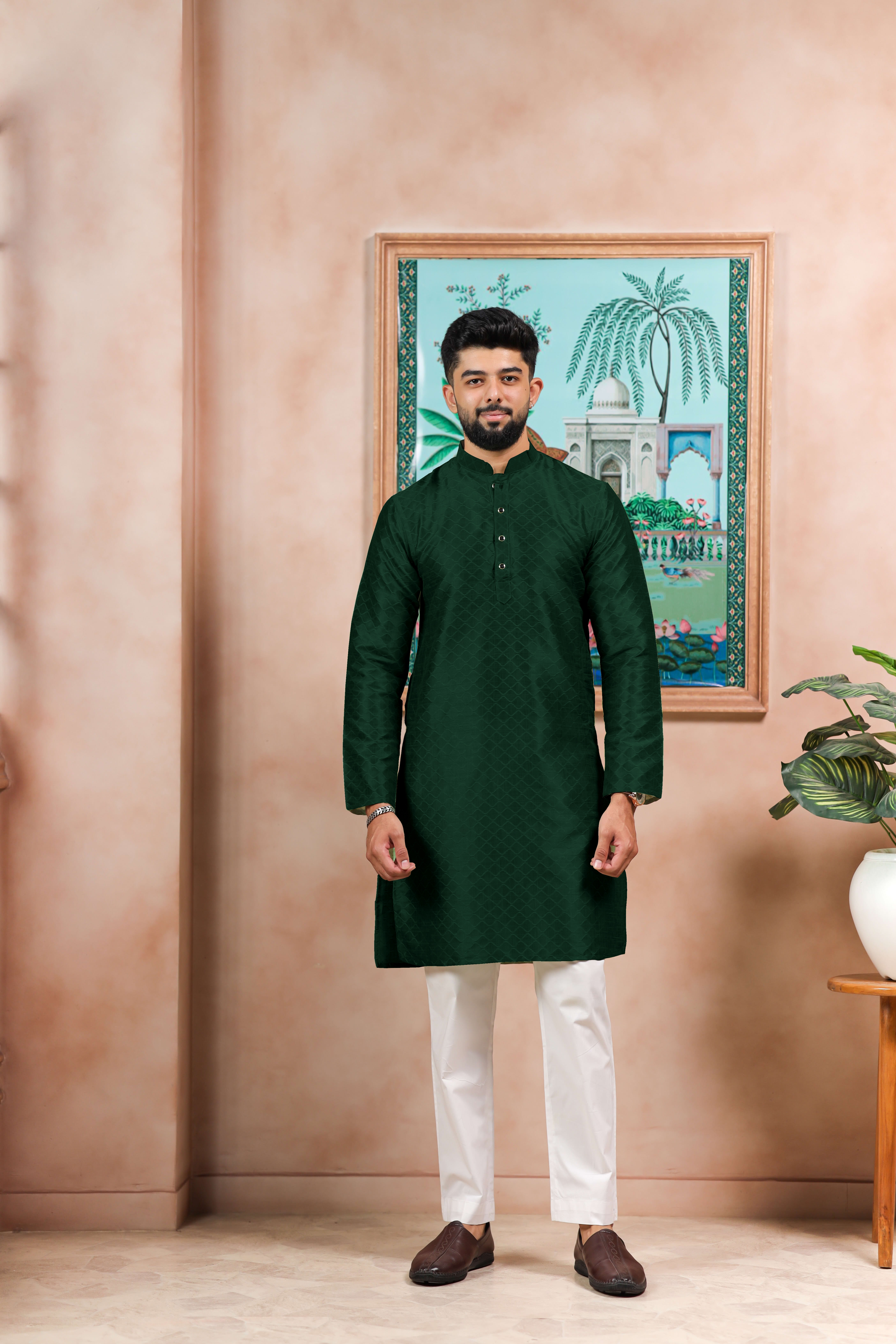 Green Color Graceful Partywear Kurta Payjama For Mens Ceremonial Looks