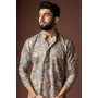 Grey Color Blended Linen Designer Printed Stylish Kurta Payjama For Mens'