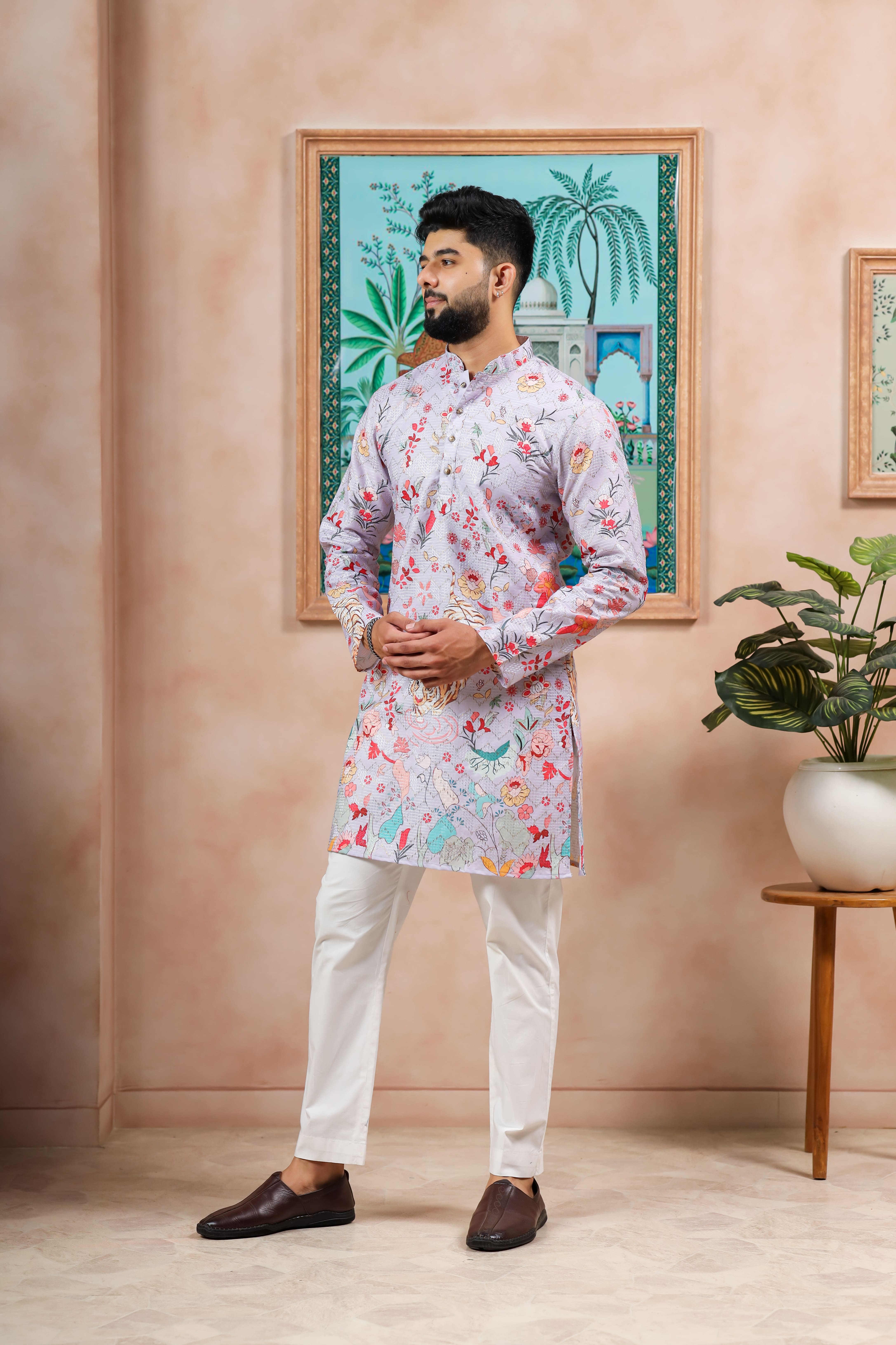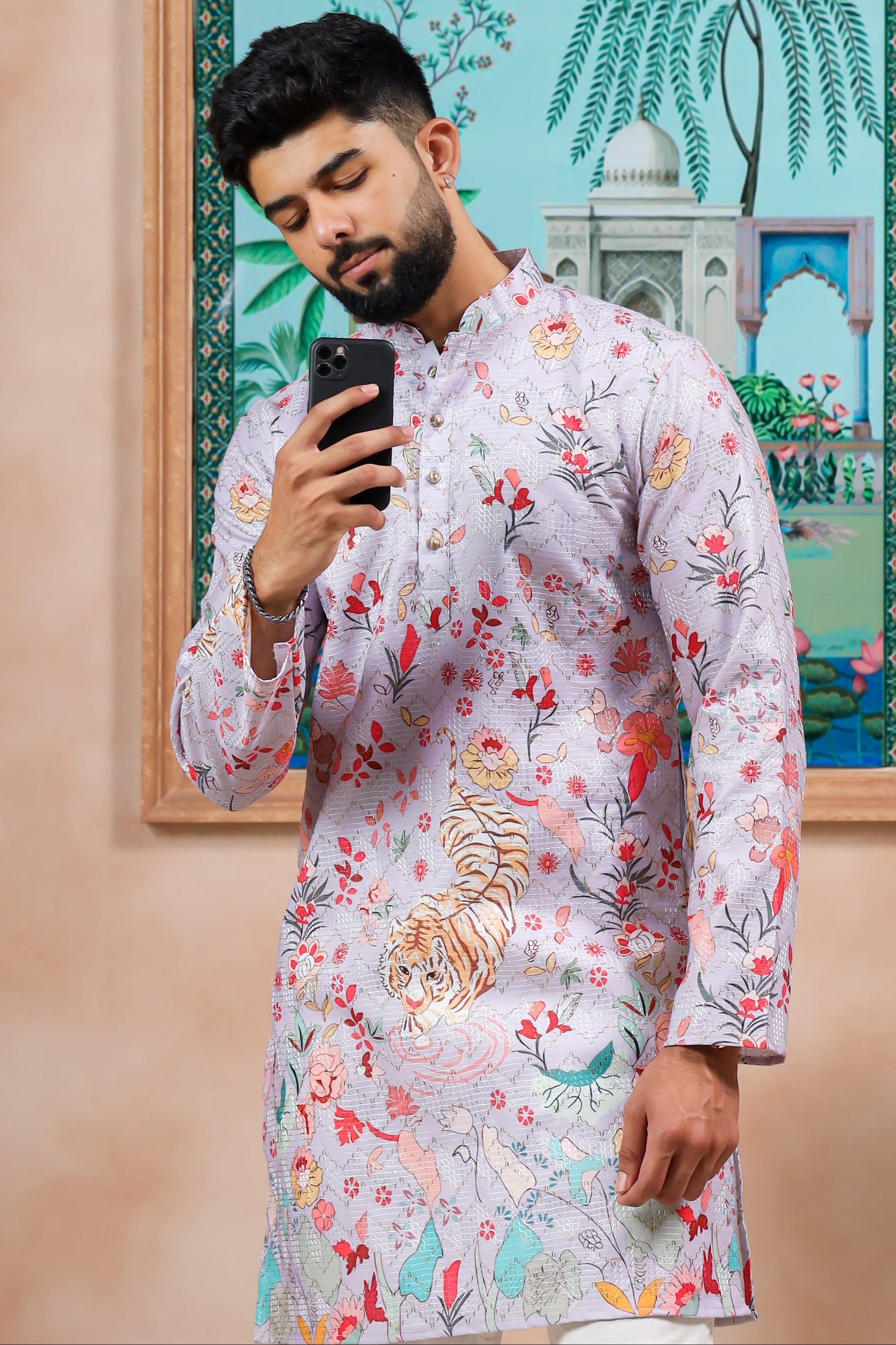 Lavender Color Beautiful Blended Cotton Fabric Ceremonial Kurta Pjyama