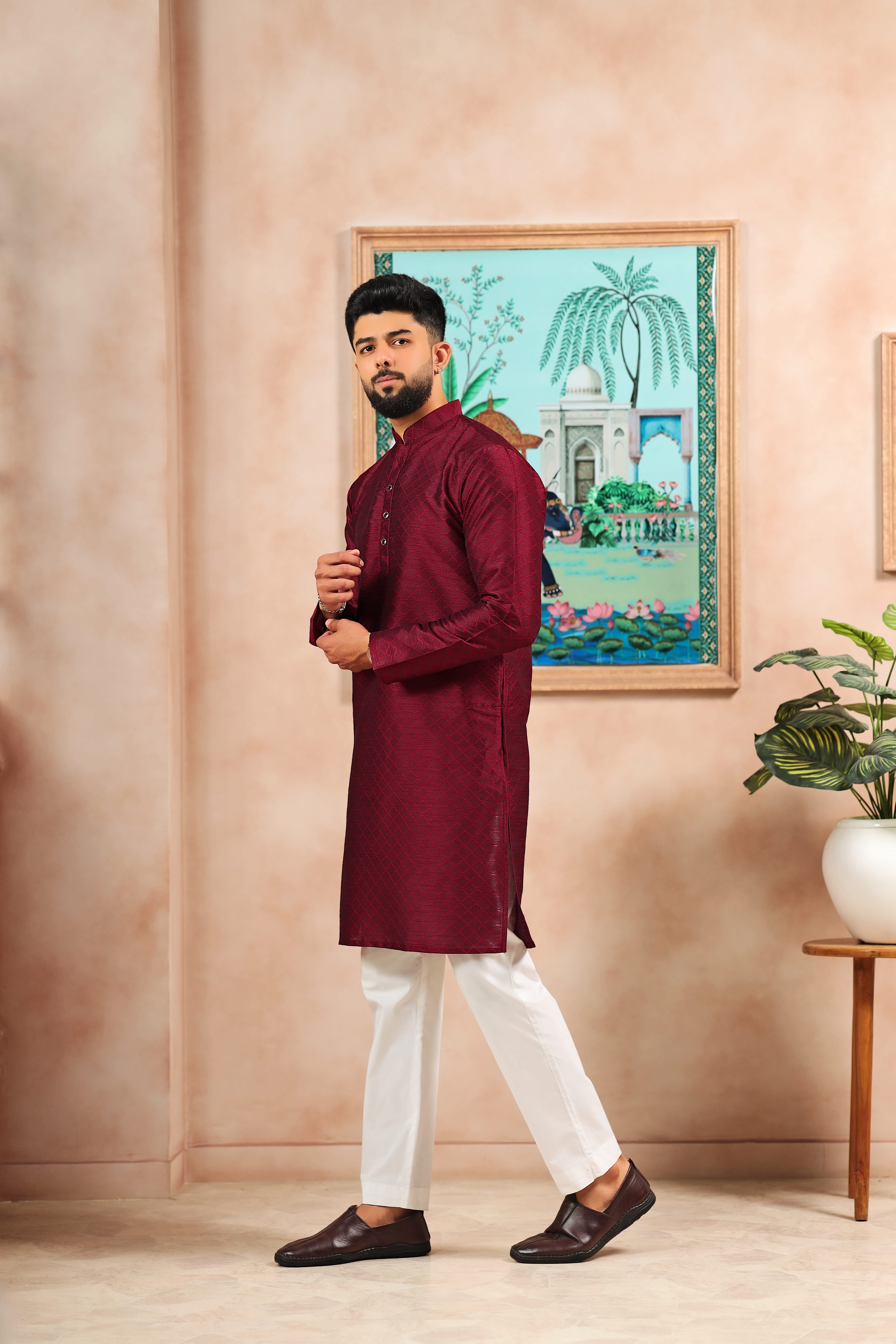 Maroon Color Graceful Partywear Kurta Payjama For Mens Ceremonial Looks