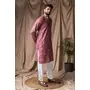 Mauve Color Blended Linen Designer Printed Stylish Kurta Payjama For Mens'