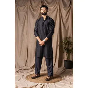 Black Color Blended Linen Designer...