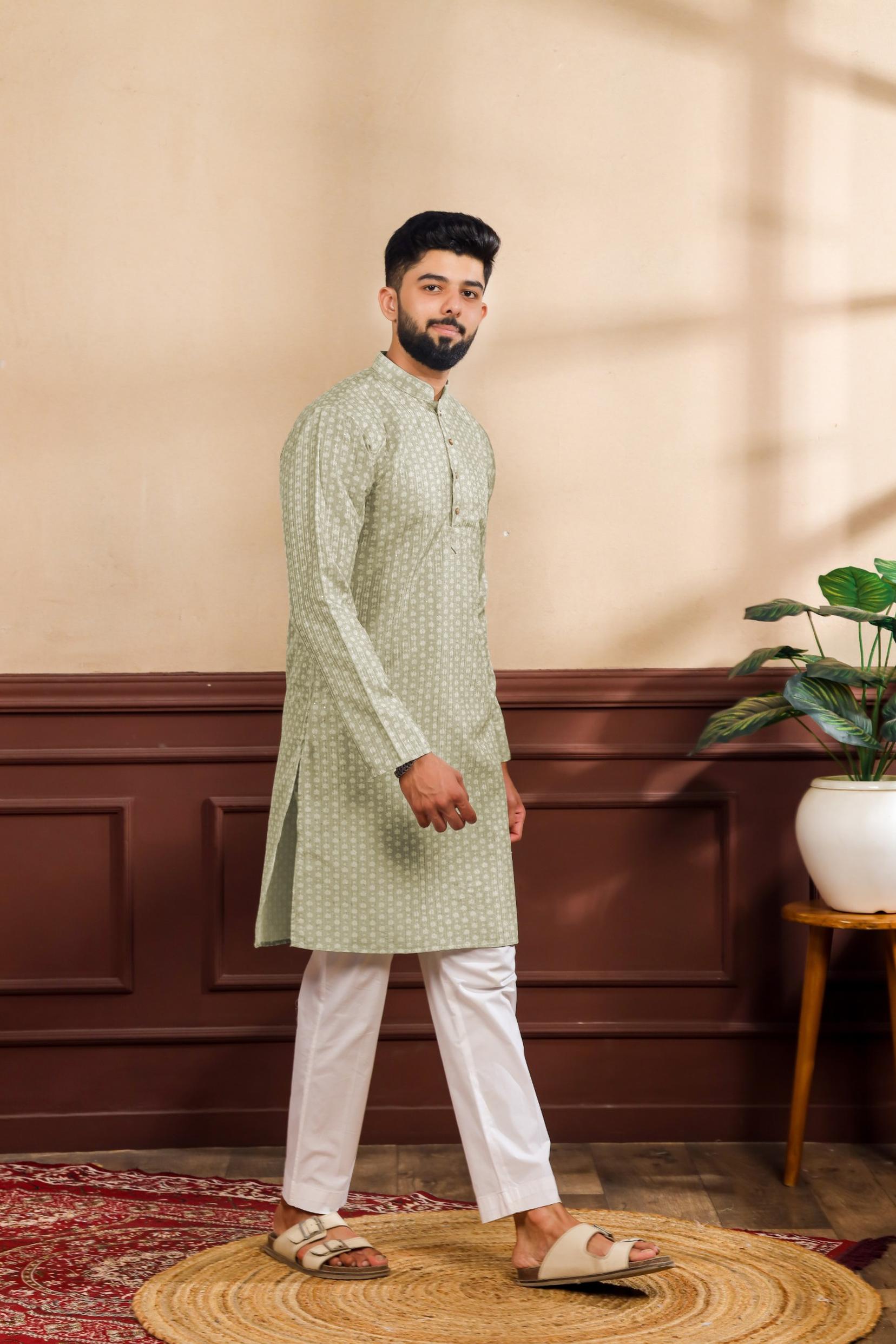 Pista Color Beautiful Art Silk Fabric Smart Print Designer Kurta Payjama