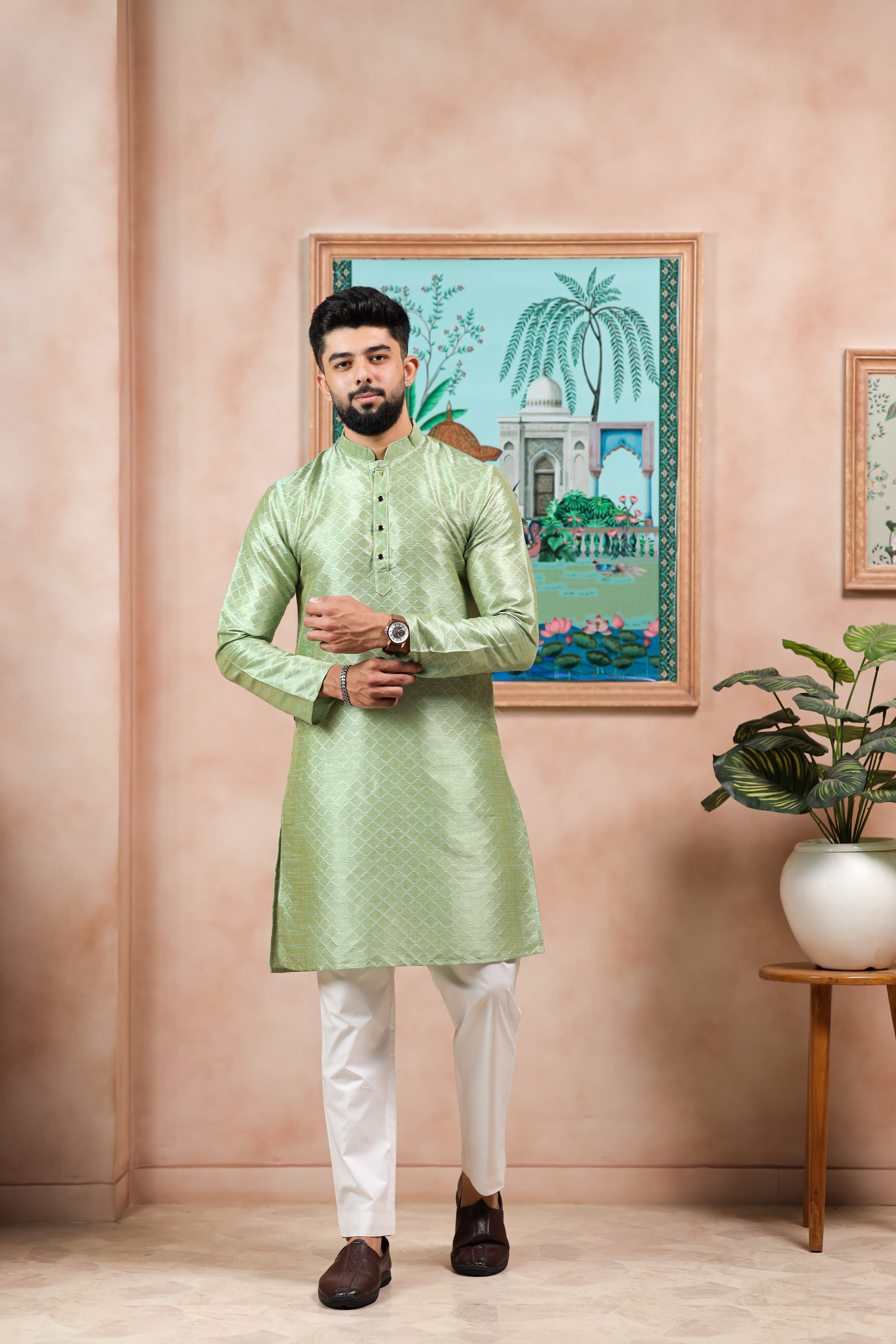 Pista Color Graceful Partywear Kurta Payjama For Mens Ceremonial Looks