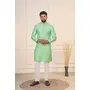 Pista Color Jacquard Silk Fabric Designer Embroidered Kurta Payjama For Men's