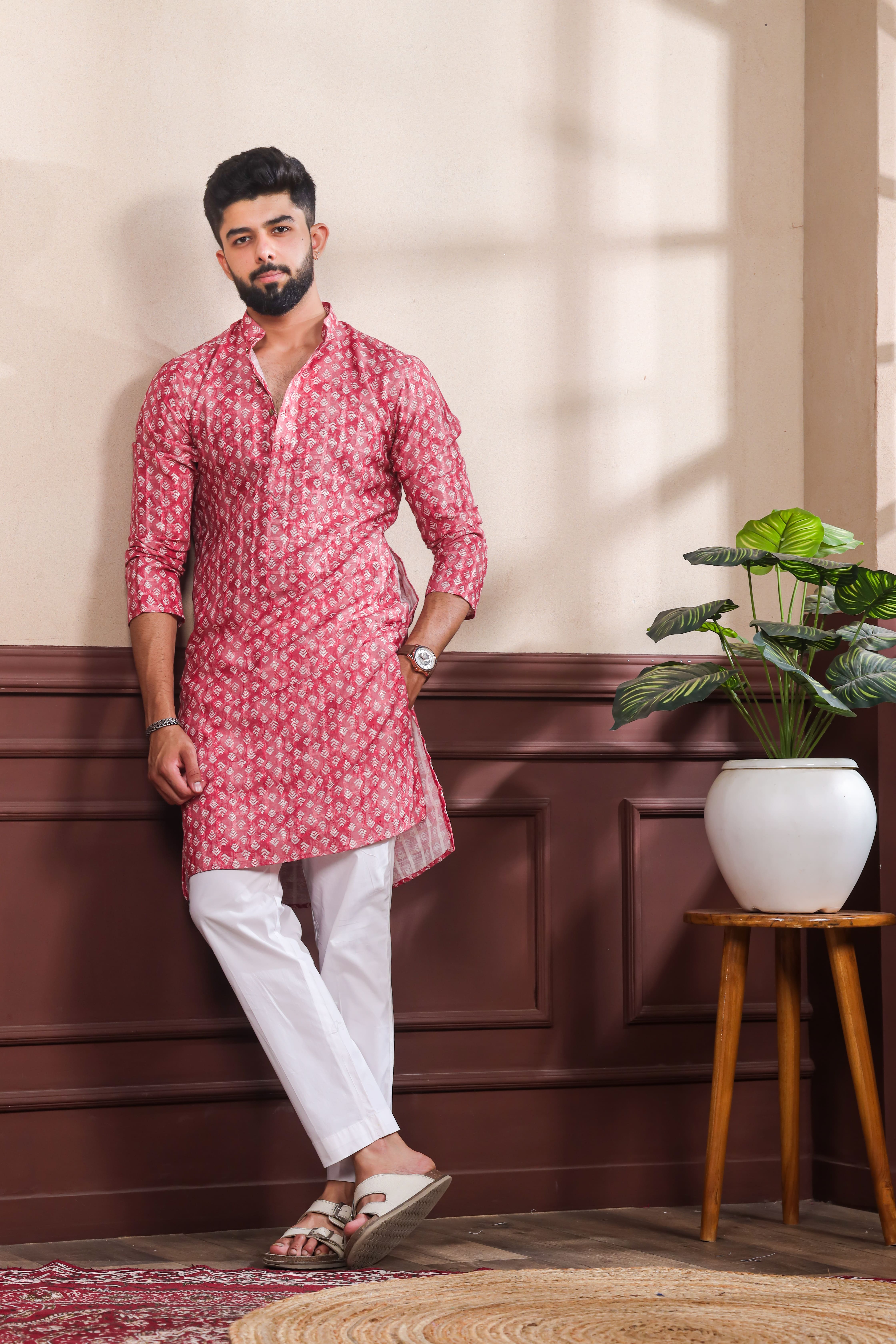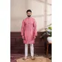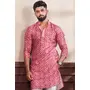 Red Color Ethnic Woven Patta With Digital Printed Ceremonial Kurta Payjama For Men's