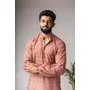 Rust Color Blended Linen Fabric Designer Printed Festive Wear Men's Kurta Payjama