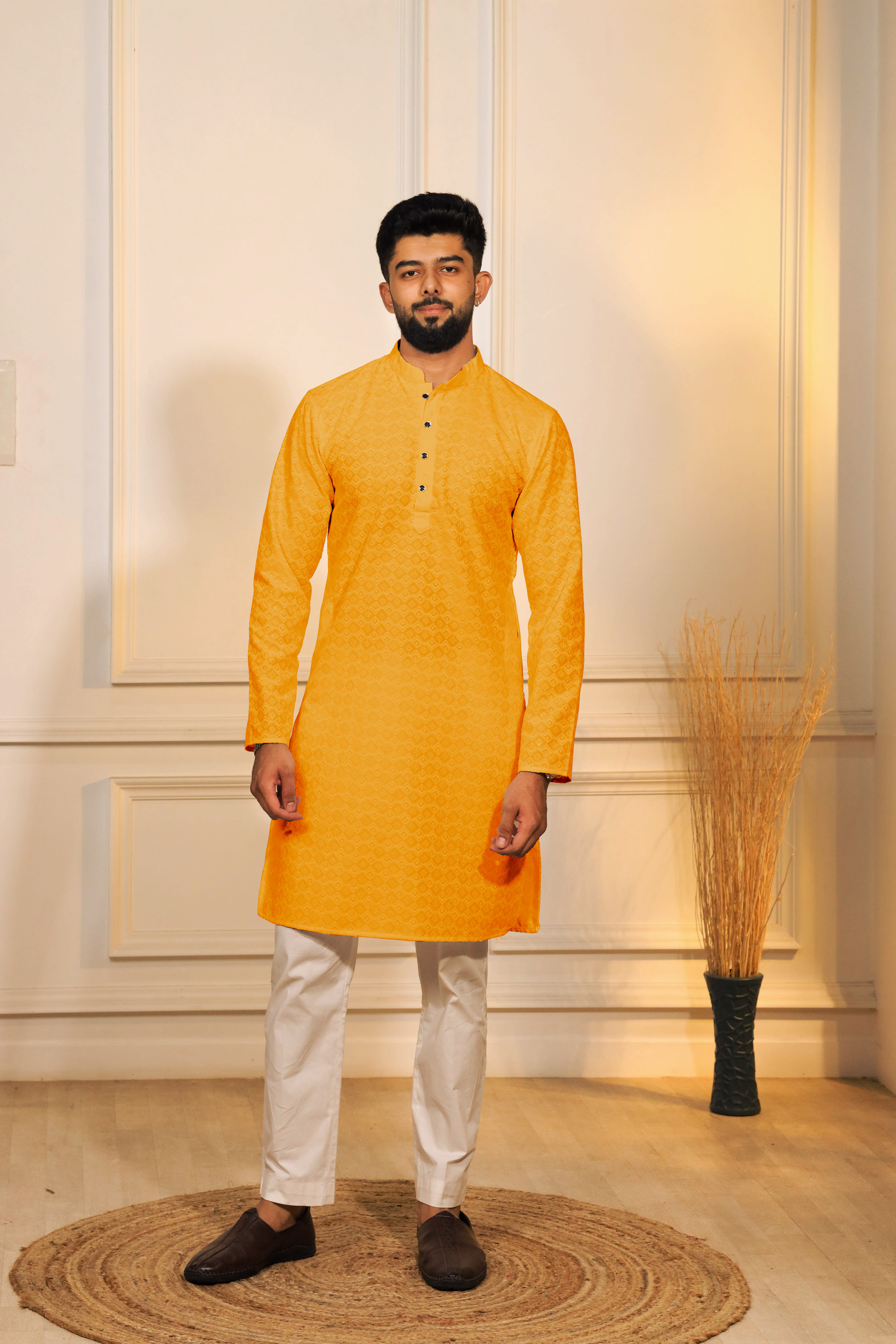 Yellow Color Designer Embroidery Work Ceremonial Ethnic Kurta Payjama For Men's