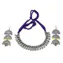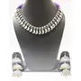 Stylish Oxidized Silver necklace set for women. Antique finish Silver finish jewellery set with dangle earrings which are in dangler fashion.Party wear necklace jewelleryMatinee Necklace set with shape pendant with silver beaded and stud earring set women fashion jewellery for daily and office wear. Stylish Silver necklace set for women.The necklace is made in Jaipur Rajasthan. The necklace is made in Jaipur. The oxidized silver necklace design is such that it is adjustable thus you can make it a collar choker or princess. Antique silver finish jewelry set for wedding party. Such a design looks extremely good on Bib Bandeau tube top and off shoulder dresses. Its a stylish statement item for any Black violet Red or white dress. It will suit a pink couture as well. The necklace should not be worn with round neck t shirt as it would loose its appearance. The big silver enhances he beauty of the necklace. From a protection perspective please make sure that youo wear the necklace last after make up is fully done. Once the party is over the necklace should be the first item to be taken off. This will ensure its longevity. Also protect it from water direct spray of deodorant. The earrings are made up of German silver and are long tassel for a statement look. Oxidized silver stylish women fashion jewellery set. Great go neck piece for Navratri diwali festival dresses. The necklace is perfect to wear along with Bib Bandeau Tube top and any off shoulder dress. The necklace is great to be worn on social outings of formal dressing as well. From a protection perspective please make sure that youo wear the necklace last after make up is fully done. Once the party is over the necklace should be the first item to be taken off. This will ensure its longevity. Also protect it from water direct spray of deodorant.