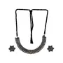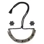 PRODUCT DETAILS This jewellery set consists of a necklace and earrings Silver-plated Green and red kundan-studded necklace secured with drawstring closure A pair of matching stud earrings secured with post and back closure Size & Fit Necklace dimensions: 34.5 cm x 4.5 cm (Length x Width) Earrings dimensions: 3.2 cm x 2.8 cm (Length x Width) Material & Care Material: German Silver Plating: Silver-Plated Stone Type: KundanCare Instruction Wipe your jewellery with a soft cloth after every use Always store your jewellery in a flat box to avoid accidental scratches Keep sprays and perfumes away from your jewellery Do not soak your jewellery in water Clean your jewellery using a soft brush dipped in jewellery cleaning solution only