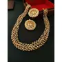 Green layered necklace Material and stone type: german silver with kundan Closure: drawstring Size & Fit Necklace Length: 60 cm Material & Care Material: German Silver Stone type: Kundan Wipe with a soft lint-free clean cloth. Avoid contact with perfume soap hairspray and cosmetics. Avoid using in swimming pools. Store your jewellery in a fabric-lined box to prevent loosening of stone setting