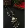 PRODUCT DETAILS This jewellery set consists of a necklace and a pair of earrings Silver-plated long necklace has green stone-studded details Secured with a s-hook closure A pair of matching drop earrings each secured with a hook closure Size & Fit Necklace dimensions: 18 cm x 2 cm (Length x Width) Earrings dimensions:1.3 cm x 1.3cm (Length x Width) Material & Care Material: German Silver Plating: Silver-plated Stone Type: Artificial Stones Care Instruction Wipe your jewellery with a soft cloth after every use Always store your jewellery in a flat box to avoid accidental scratches Keep sprays and perfumes away from your jewellery Do not soak your jewellery in water Clean your jewellery using a soft brush dipped in jewellery cleaning solution only