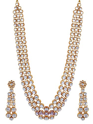 From the house of YouBella these traditional necklaces add a hint of raw ethnic beauty to any look. Representing a classic fusion of exquisite craftsmanship and feminine elegance this set will definitely be a treasured inclusion in every woman's jewellery collection. The gold finish further ensures a long-lasting shine.