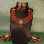 This jewellery set is crafted in 18K gold plating and consists of a choker and a pair of earrings. The necklace feature beads & pearls studded in it and is secured with a drawstring closures. Style this necklace set with a saree or a salwar suit to enhance the look.