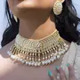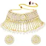 I Jewels 18K Gold Plated Indian Wedding Bollywood Kundan & Pearl Studded Choker Necklace Jewellery Set For Women/Girls (K7210-1)