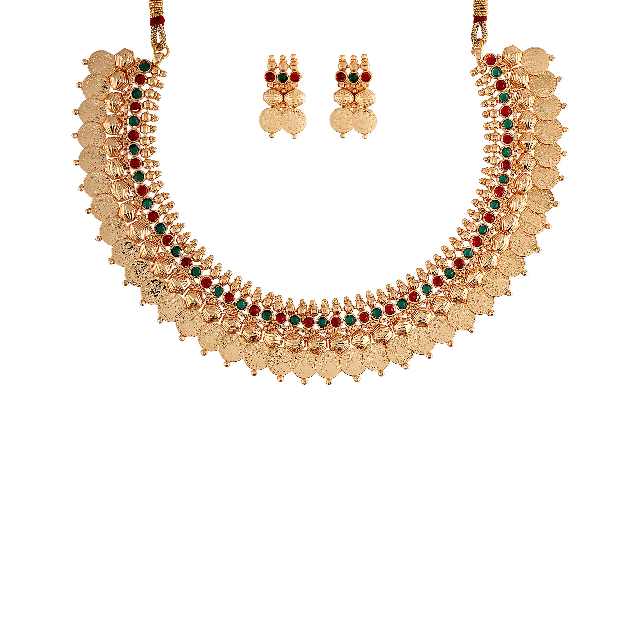 I Jewels 18K Gold Plated Indian Wedding Bollywood Stylish Golden Necklace with Earrings for Women (MC062-MC125)
