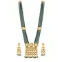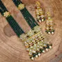 I Jewels 18K Gold Plated Intricately Designed Traditional Uncut Polki Kundan Brass Necklace Jewellery Set With Earrings Emerald Crystal Onyx Long Mala for Women (ML252)
