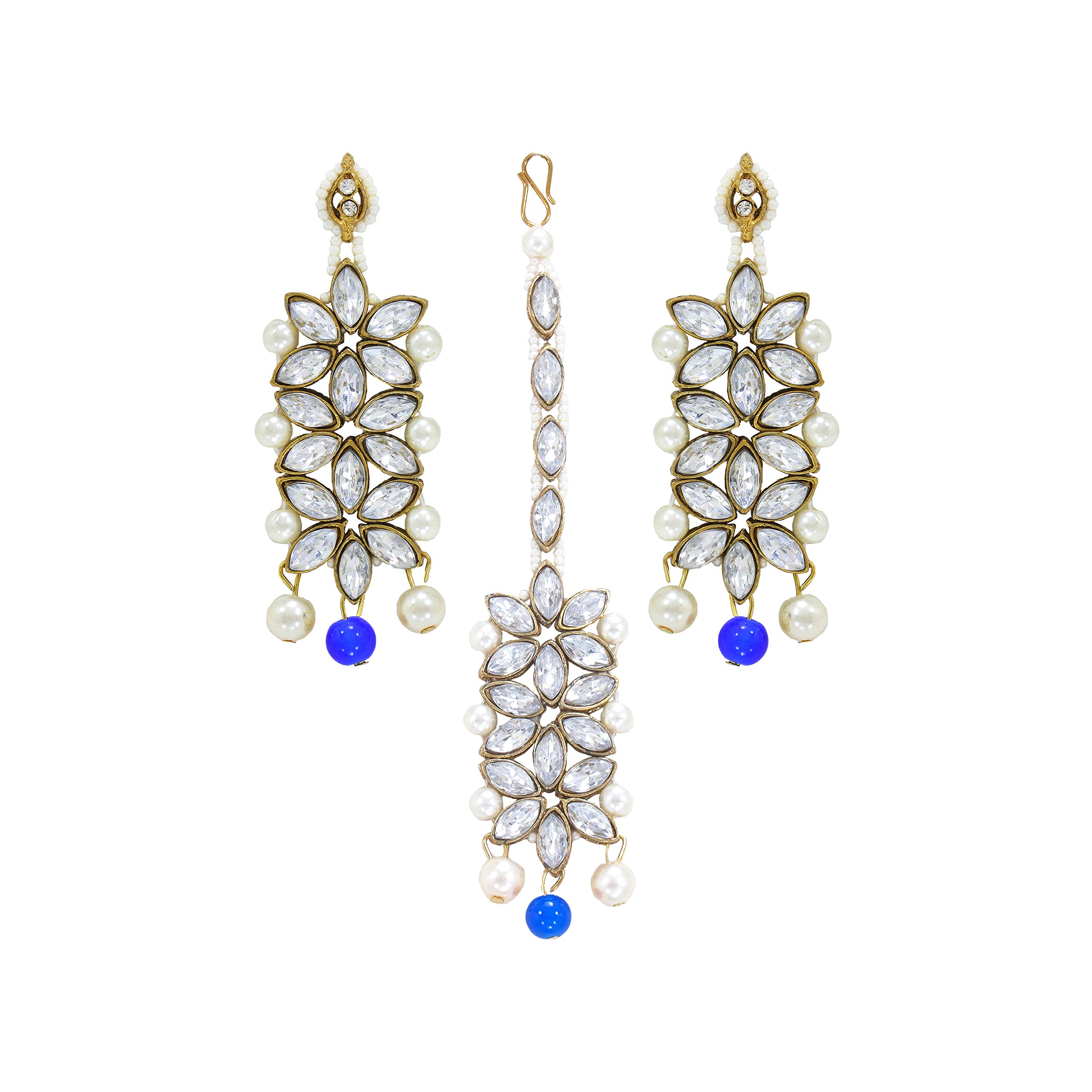 I Jewels 18K Gold Plated Traditional 5 Layers Kundan & Pearl Beaded Moti Raani Haar Necklace Jewellery Set For Women (ML164CO)